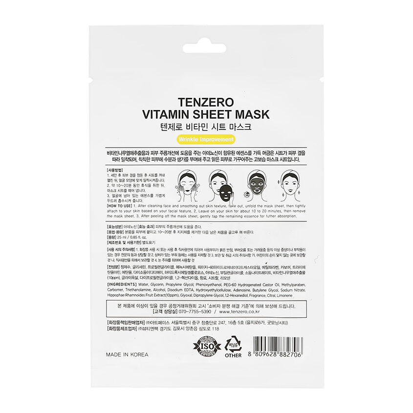 TENZERO Тканевая маска с витаминами, 25 мл