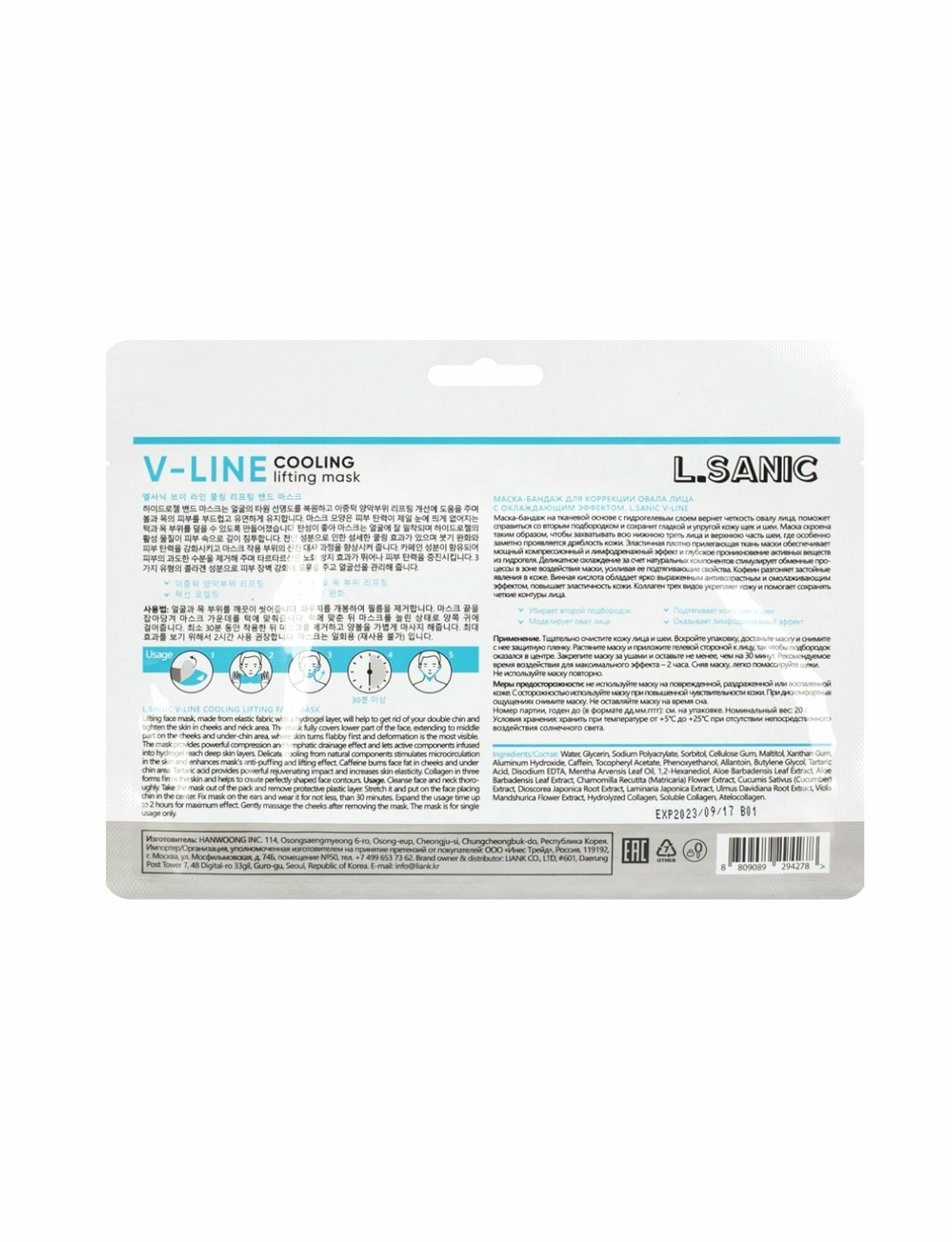Купить L.Sanic Маска-бандаж для коррекции овала лица с охлаждающим эффектом, корейская косетика. 20г