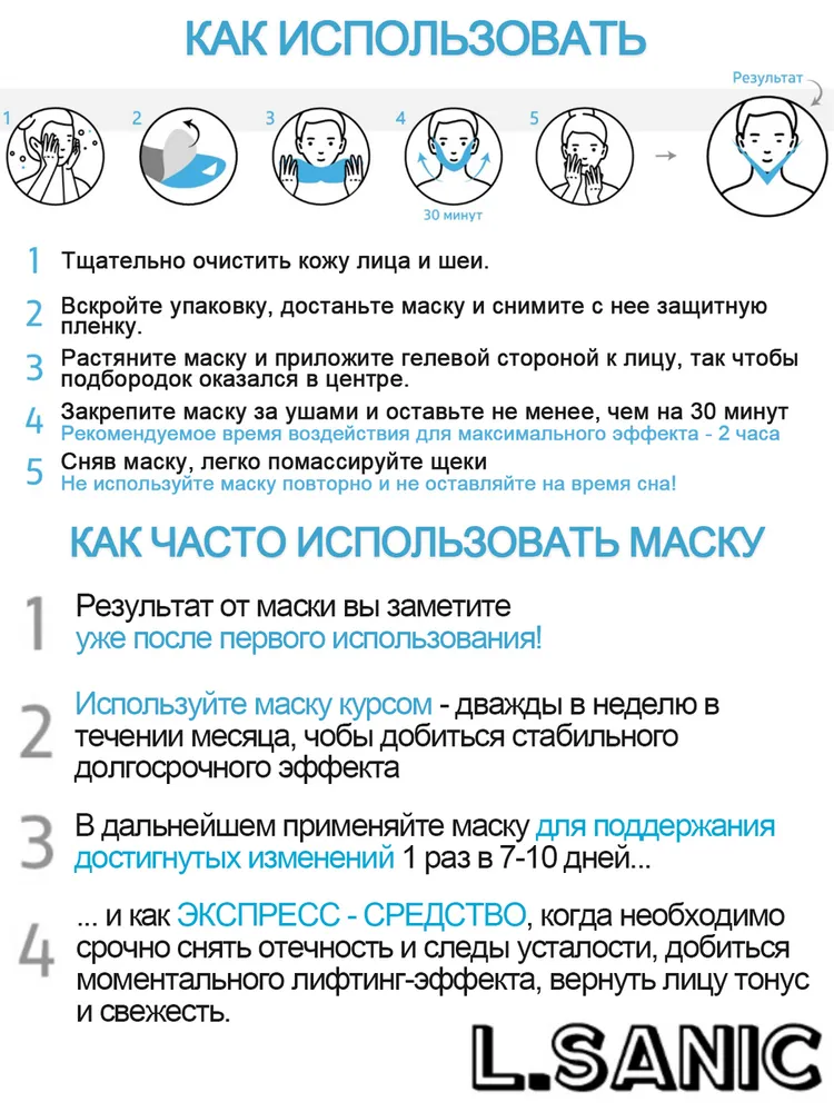 L.Sanic Маска-бандаж для коррекции овала лица с охлаждающим эффектом, корейская косетика. 20г интересное: