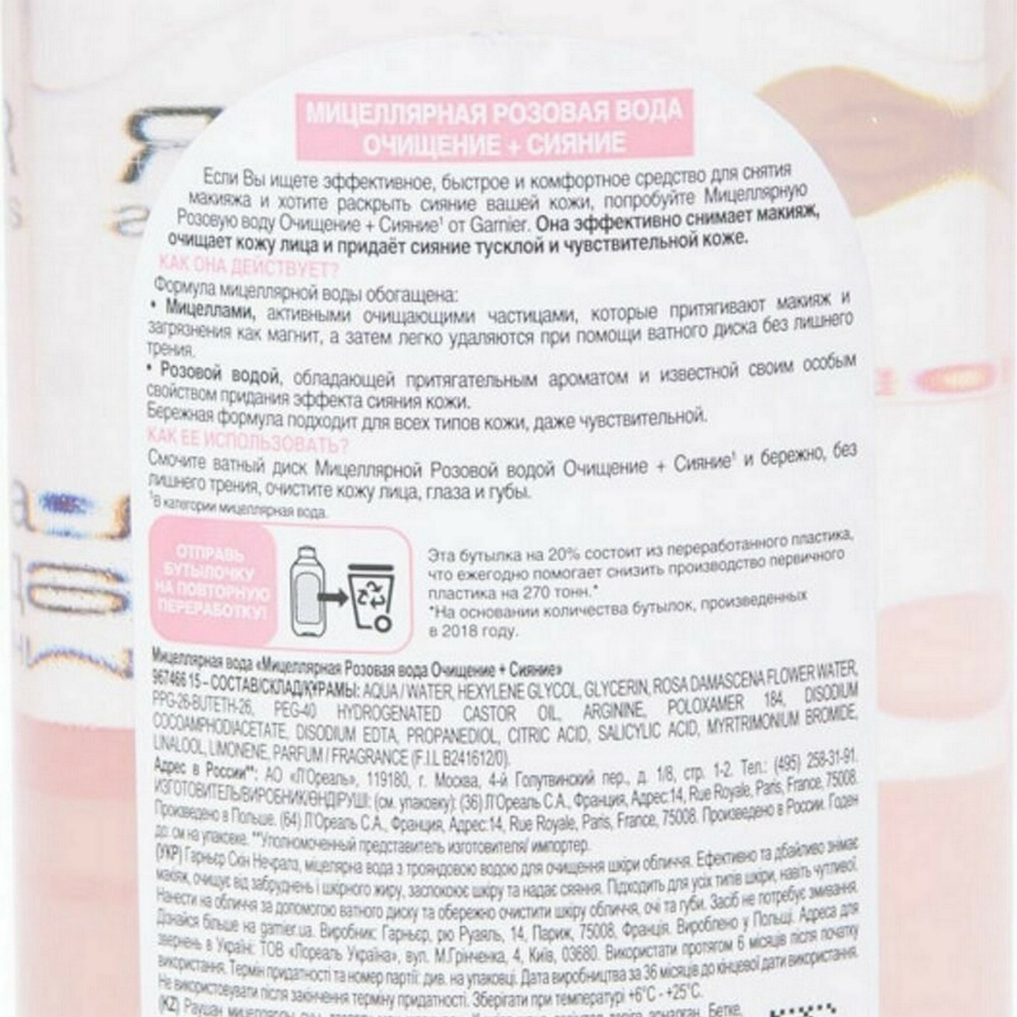 Garnier Мицеллярная Розовая вода, Очищение+Сияние, для тусклой и чувствительной кожи, 700мл
