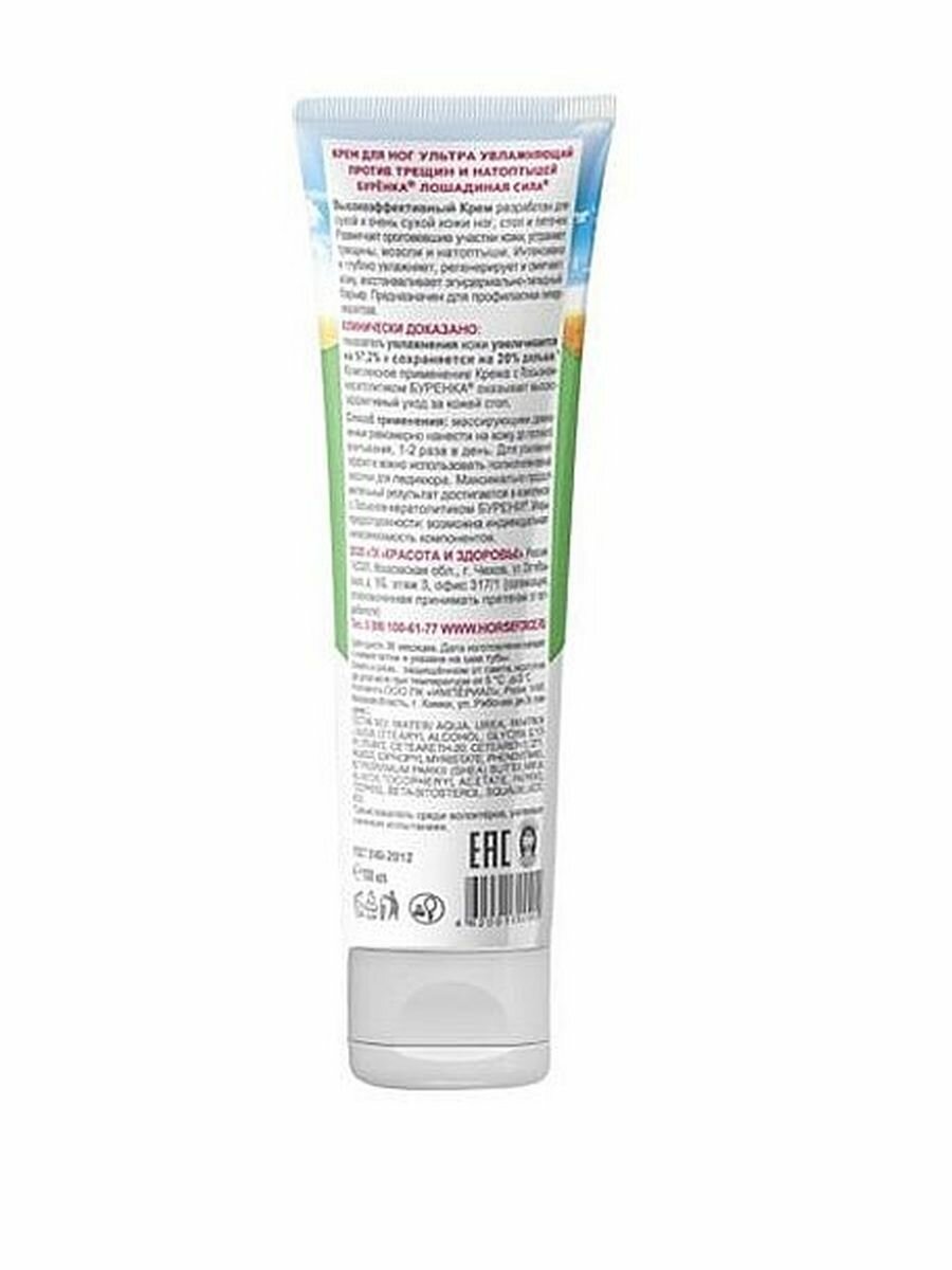 Крем для ног мочевиной 30% Буренка ультра увлажняющий Лошадиная Сила от трещин, мозолей и натоптышей против шелушений кожи, смягчающий для сухой и потрескавшейся кожи пяточек, 100мл