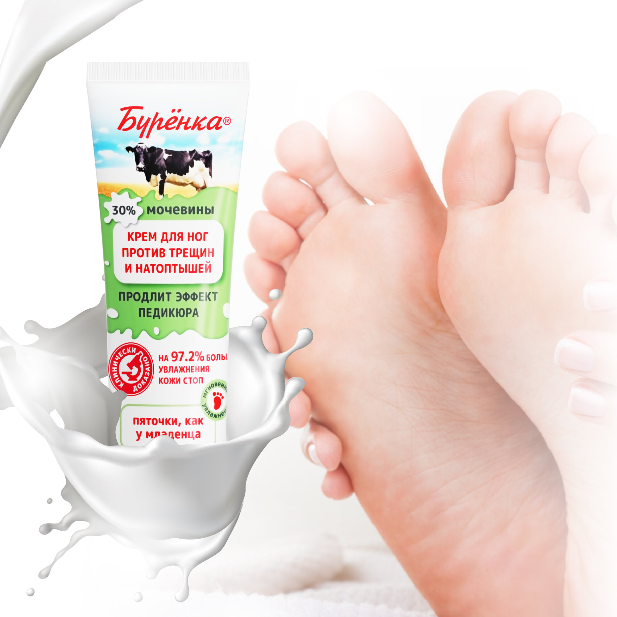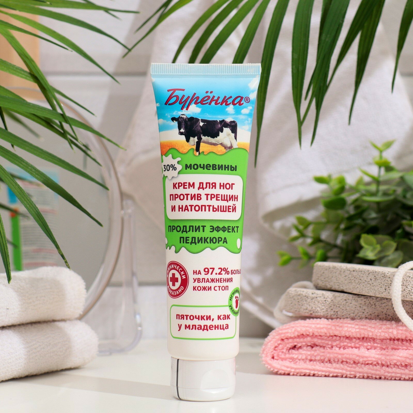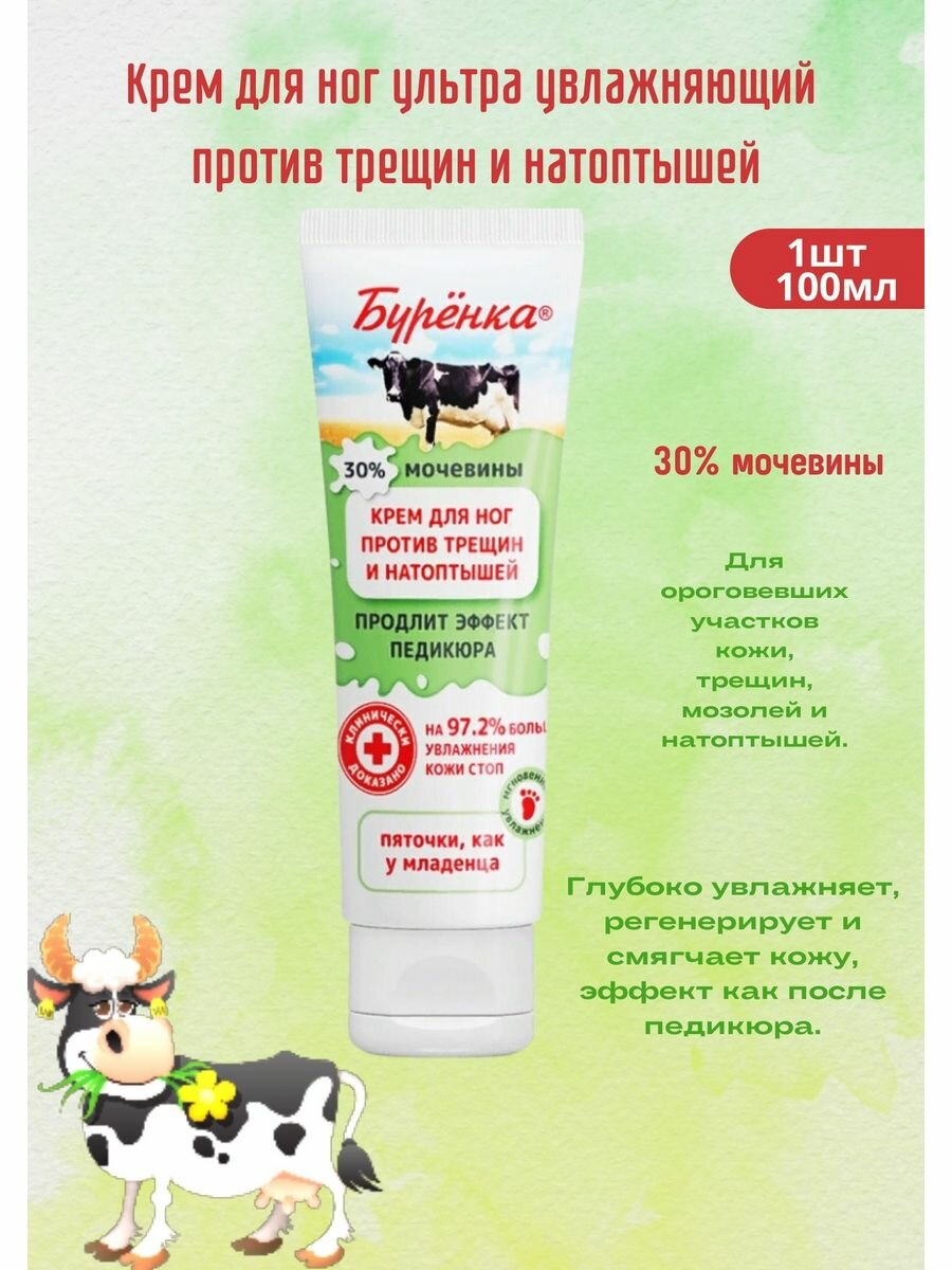 Крем для ног Буренка увлажняющий питательный с мочевиной для очень сухой кожи ног от трещин, мозолей и натоптышей 100мл