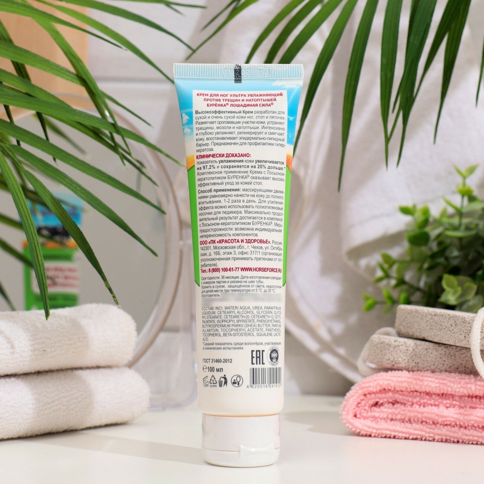 | Эффект | дезодорирование / от натоптышей / от трещин / отшелушивание / очищение / питание / повышение упругости / смягчение / тонизирование / увлажнение |