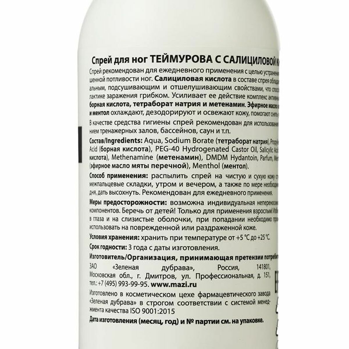 Теймурова дезодорант для ног от запаха и пота с салициловой кислотой 150 мл (1 шт.) Мужской и женский