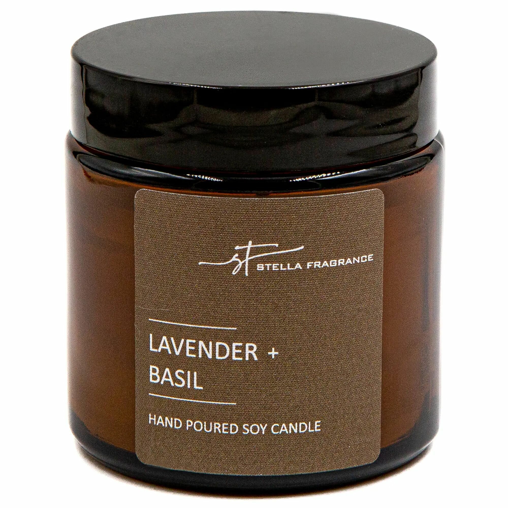 Свеча ароматизированная в стеклянной банке Stella Fragrance Lavender Basil коричневая 90 г
