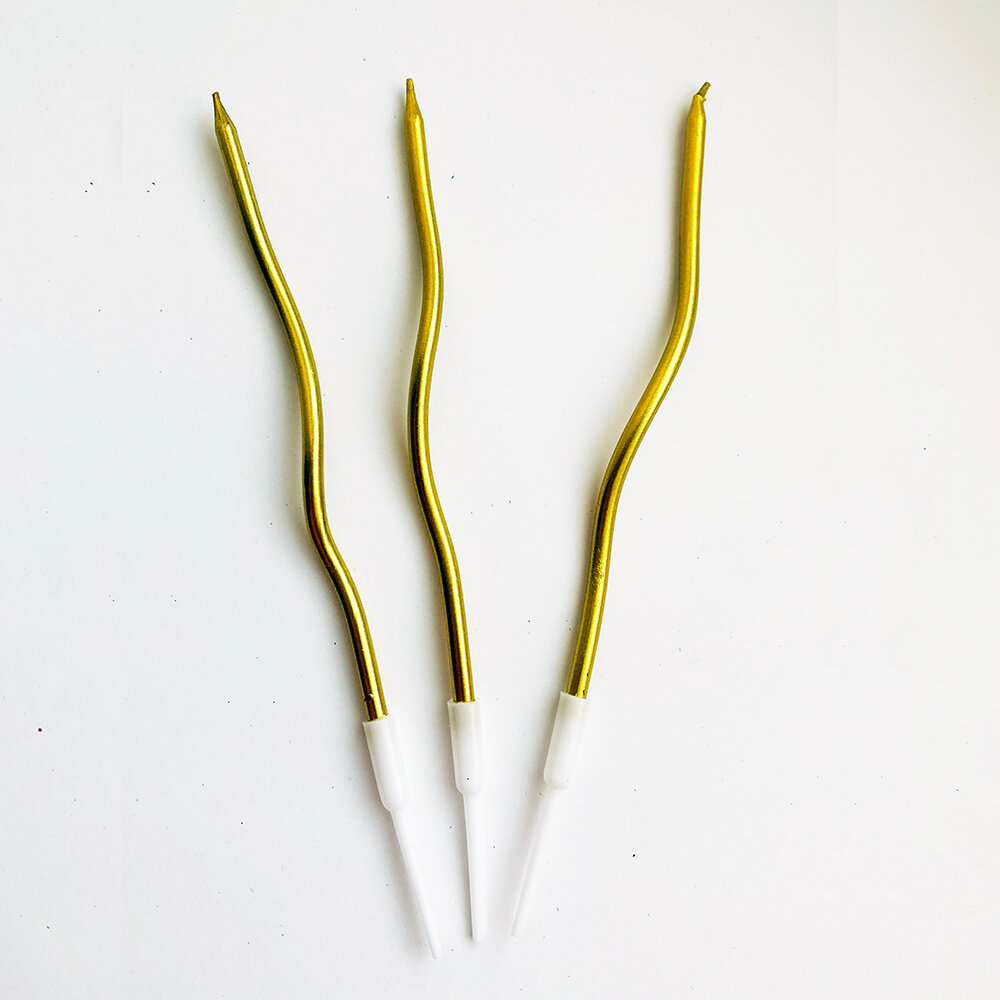 Свечи для торта "Серпантин" 6 шт, коктейльные, золото, 3 шт.