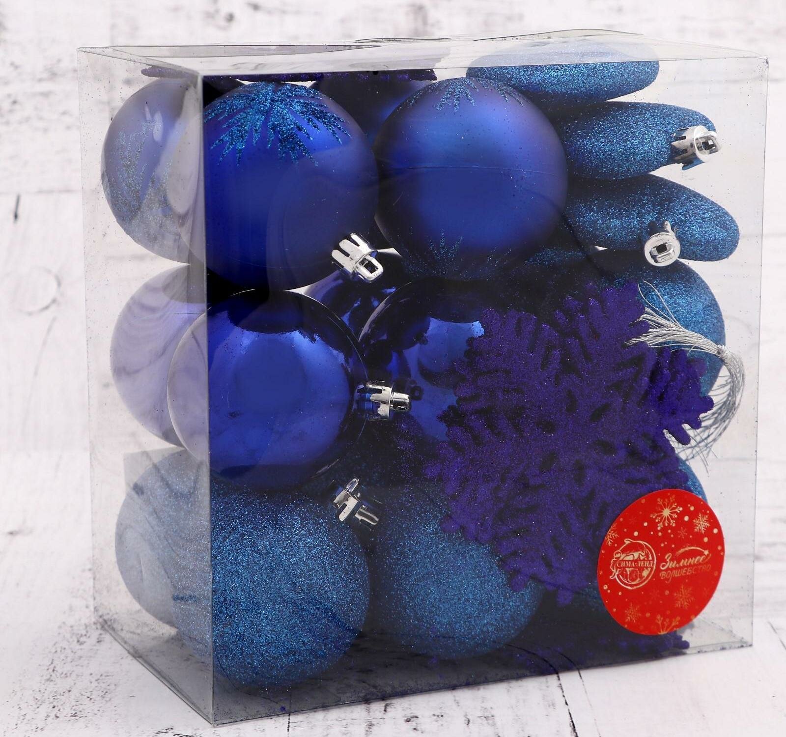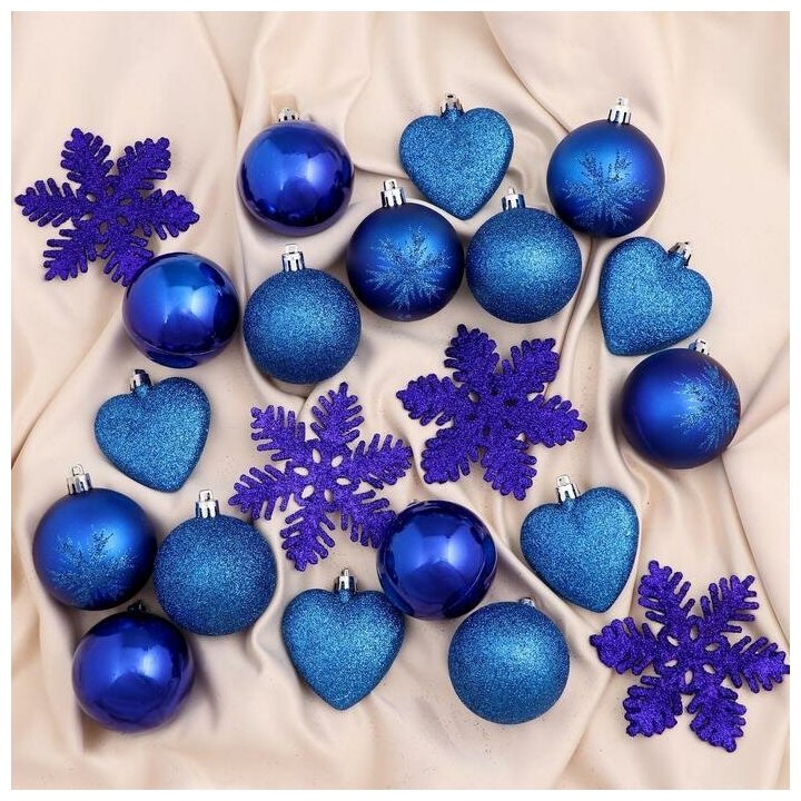 Купить Набор украшений пластик 30 шт "Амур" (16 шаров, 6 сердец, 8 снежинок) синий 4941766