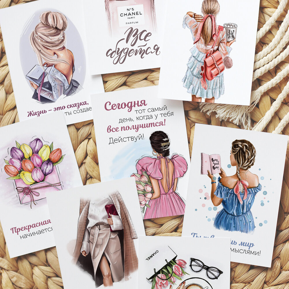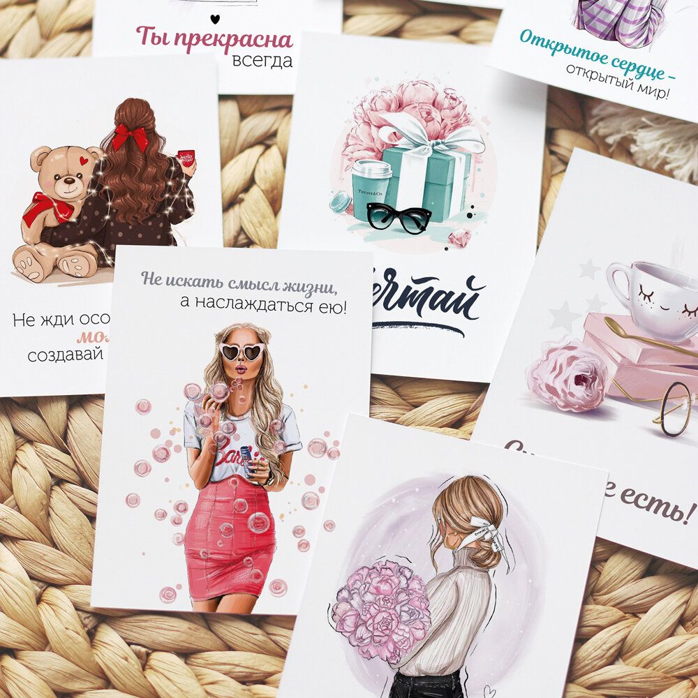 Купить Набор мини открыток от Made4u мотивационные с девушками на упаковку, 32шт