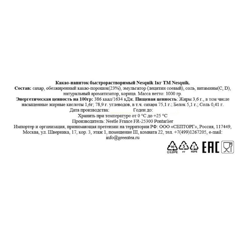 Ниже Вы можете прочитать отзывы на Какао напиток быстрорастворимый Nesquik, Nestle, 1000 гр Франция, ознакомится с подробными характеристиками, посмотреть интересные обзоры и фотографии на Какао напиток быстрорастворимый Nesquik, Nestle, 1000 гр Франция.