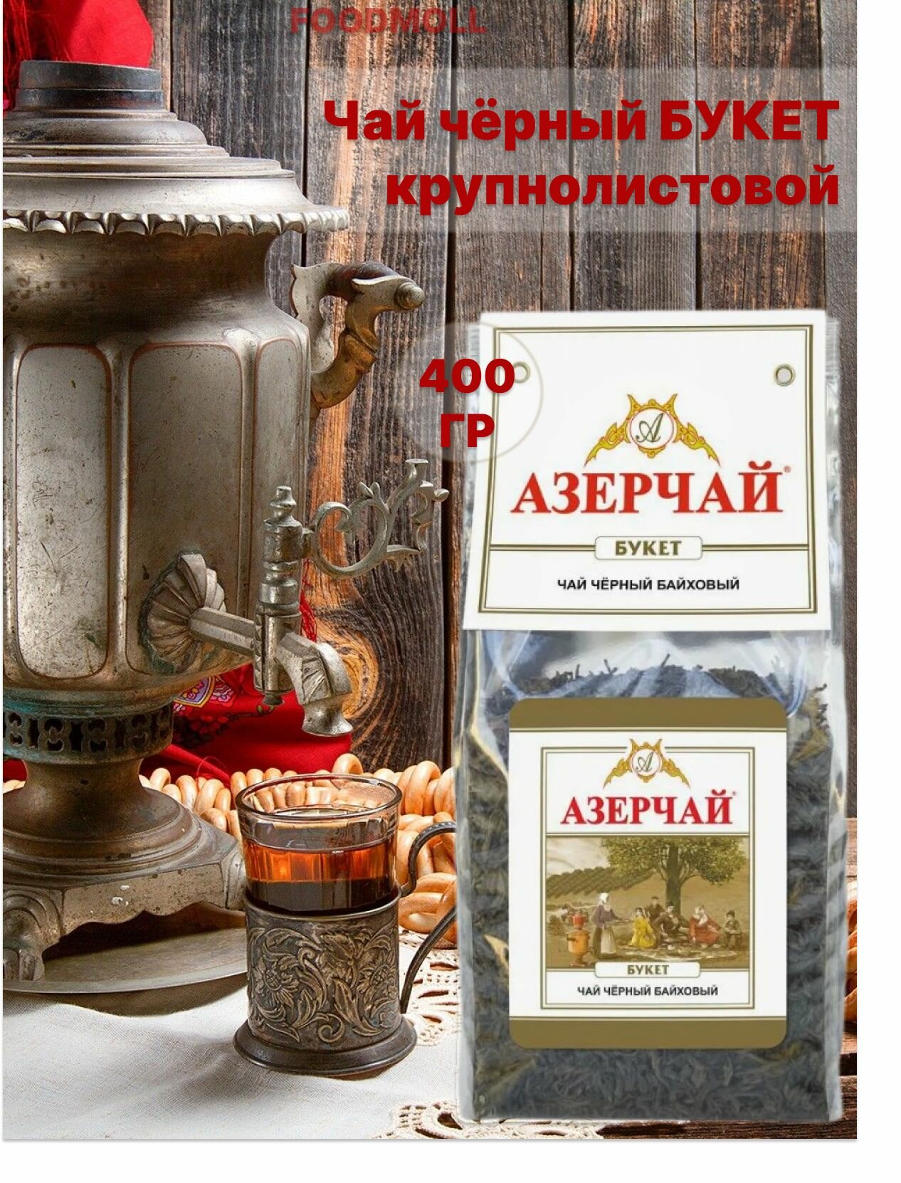 Чай листовой черный Азерчай Букет, 400 г МЯГ.упак.