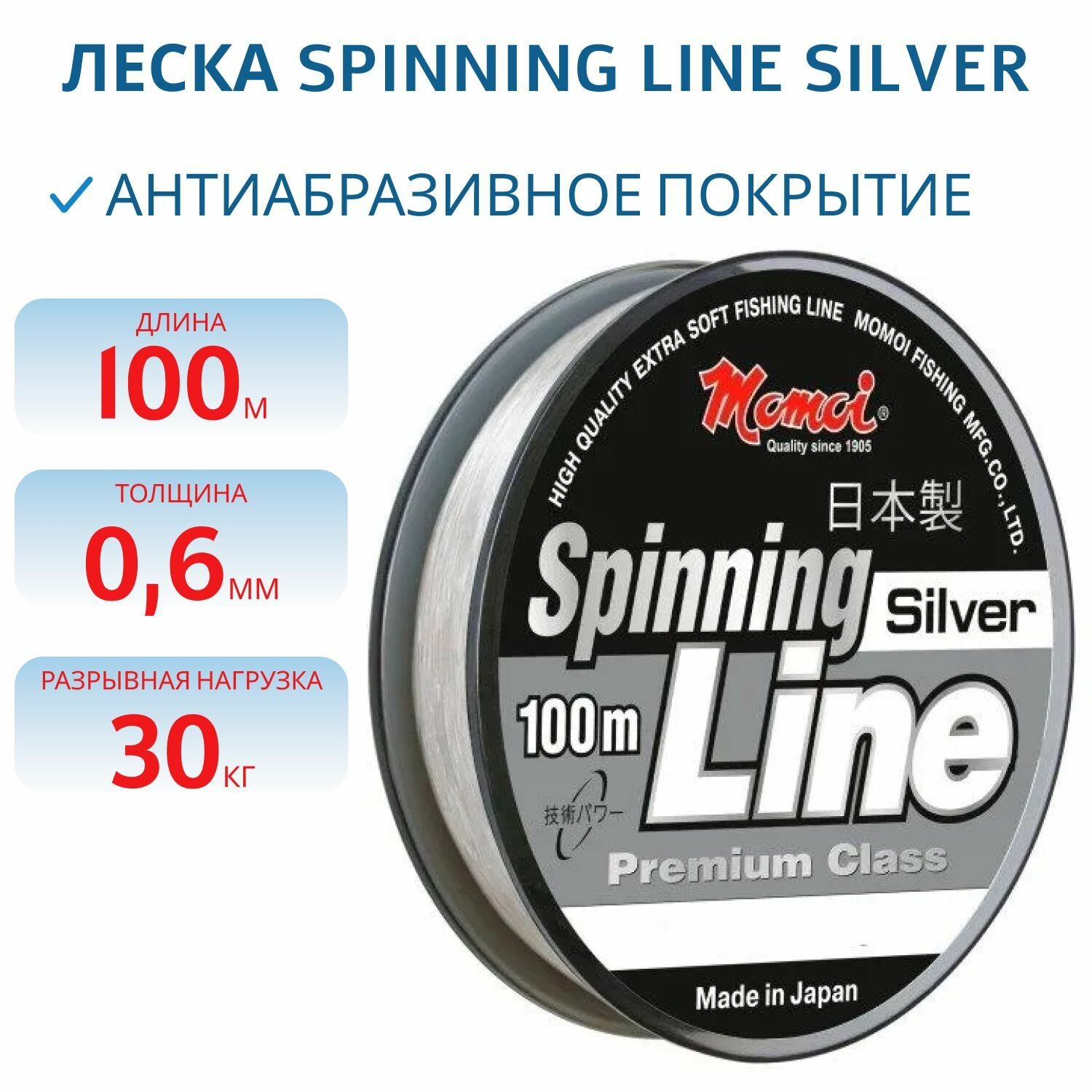 Монофильная леска для рыбалки Momoi Spinning Line Silver 0,16 мм, 3,0 кг, 100 м, серебряная, 1 штука