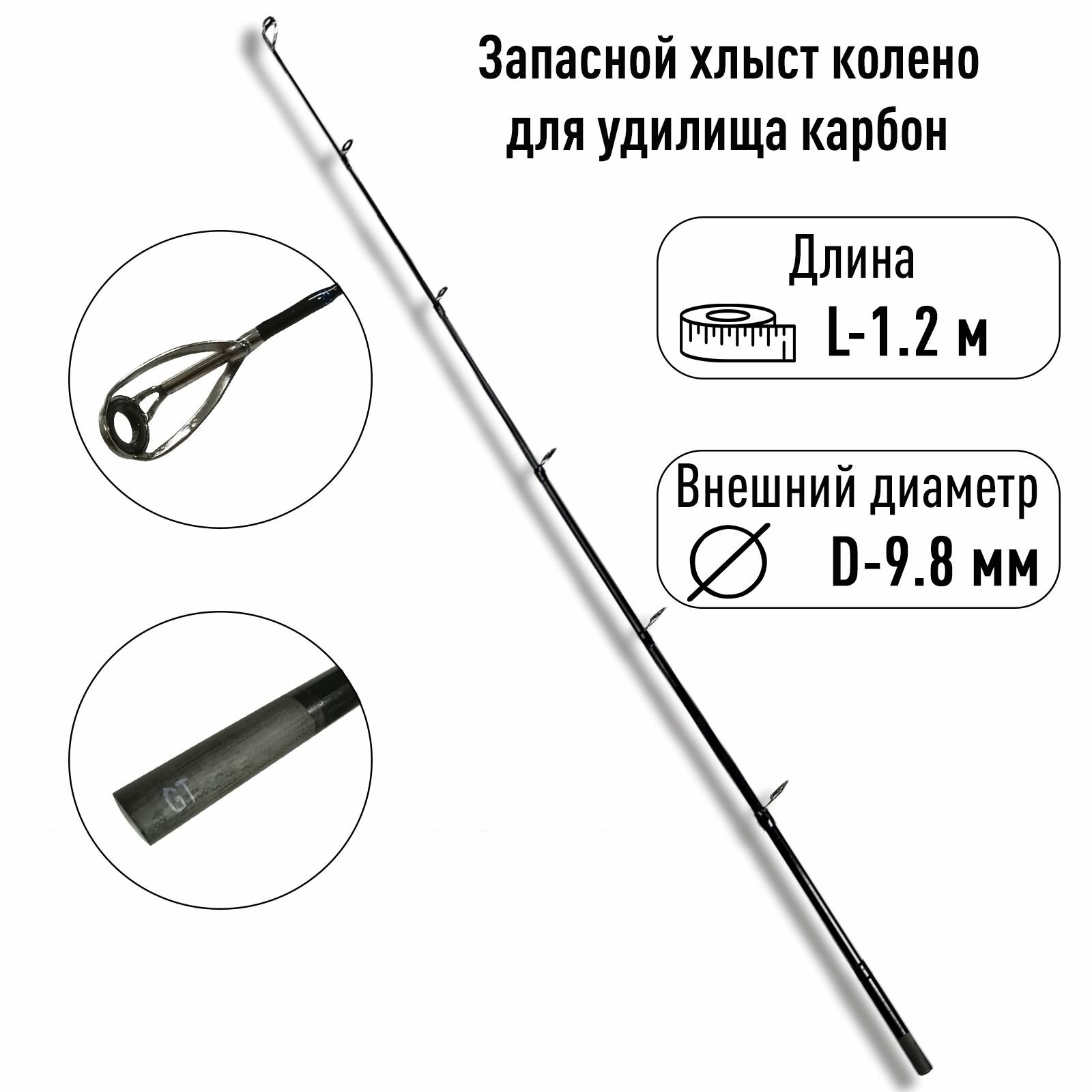 Запасной хлыст колено вершинка для удилища спиннинга карбон 120см диам 9.5мм тест универсальный