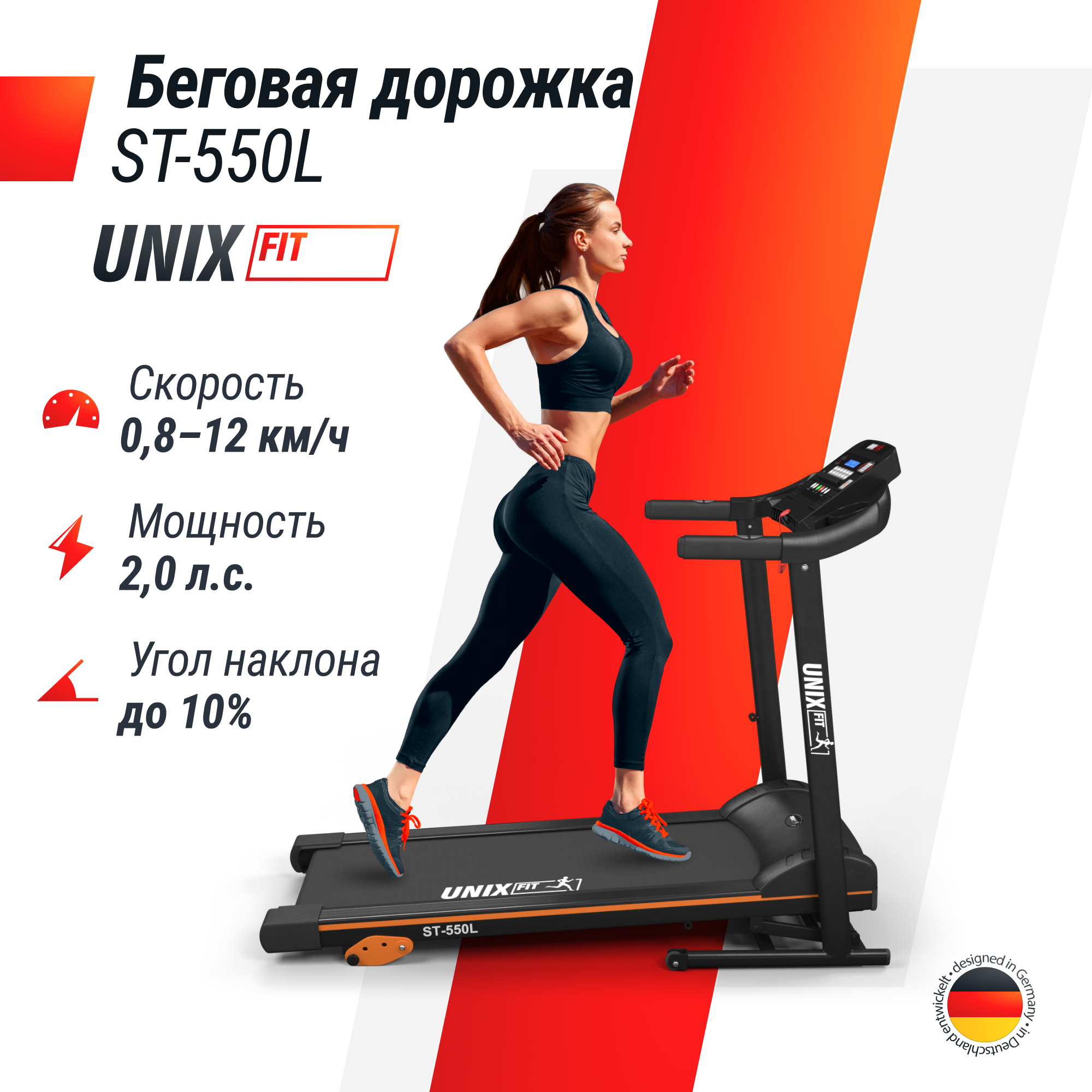 Беговая дорожка UNIX Fit ST-550L, 1.5 л.с., до 120 кг, беговое полотно 120 x 42 см, скорость 0.8 - 12 км/ч, угол 0-10 %, 6 плоских эластомеров UNIXFIT