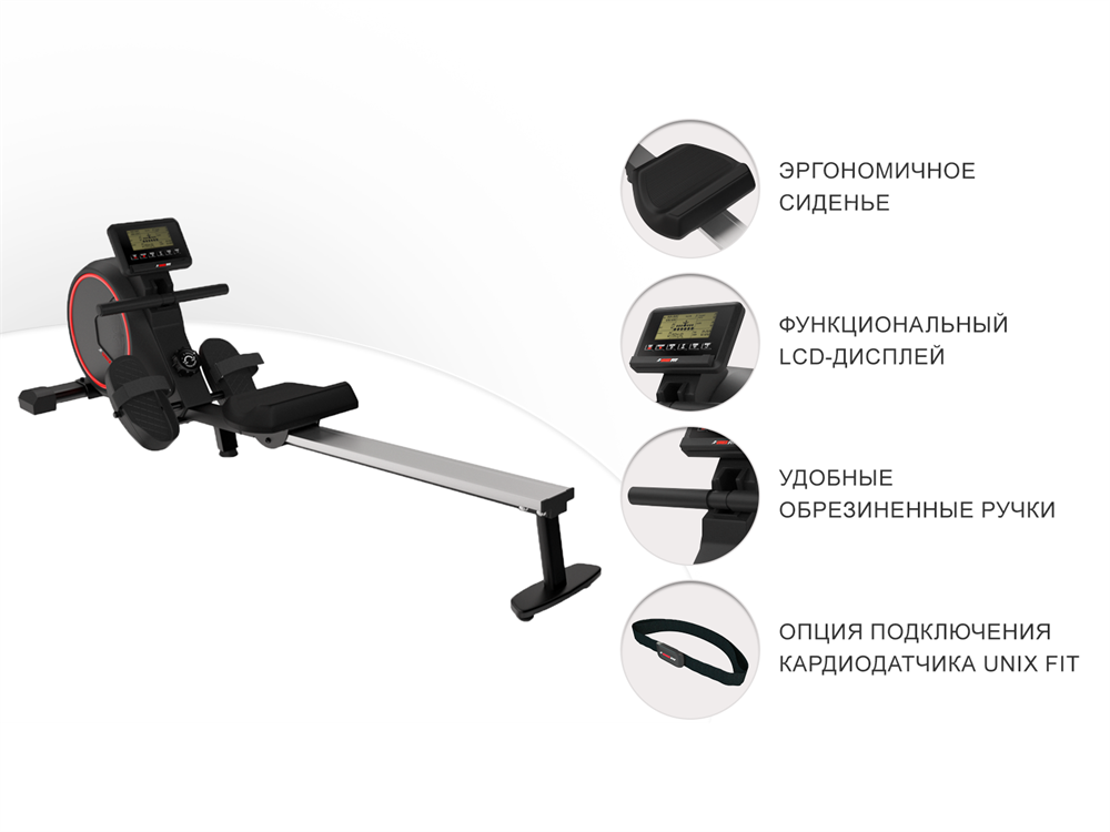 Гребной тренажер UNIX Fit Techno Rower 410, RMTF410 Черный, красный интересное: