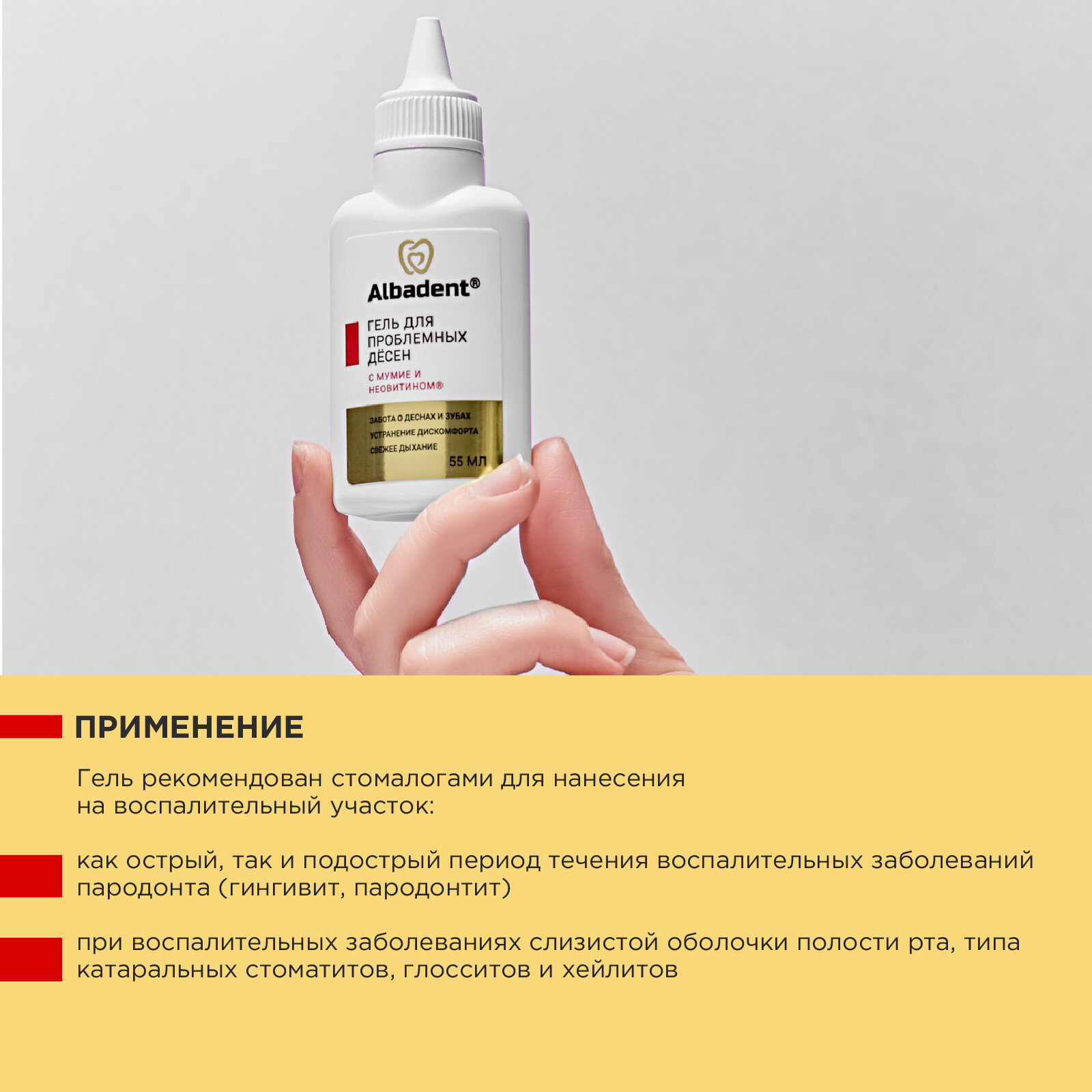 Гель для проблемных дёсен Альбадент с мумиё и неовитином, 55 мл