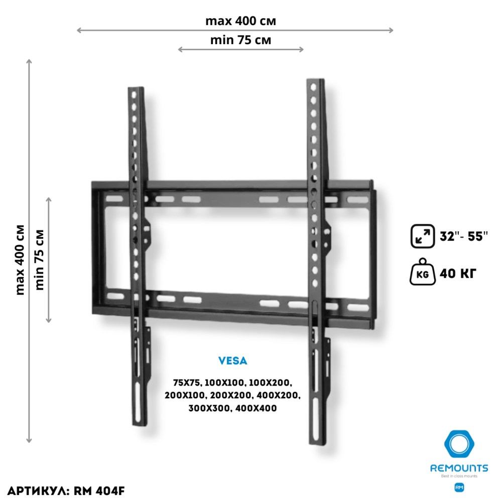 Кронштейн Remounts RM 404F для LCD телевизоров 32-55", фиксированный, черный .
