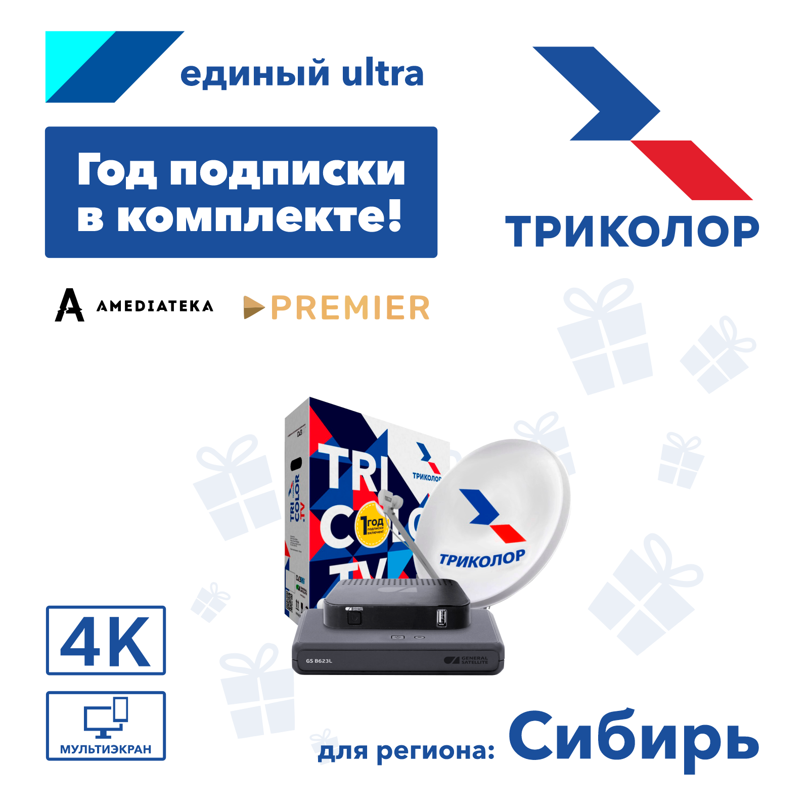 Комплект спутникового телевидения Триколор ТВ Сибирь Ultra HD GS B623L и С592 (7 дней подписки)