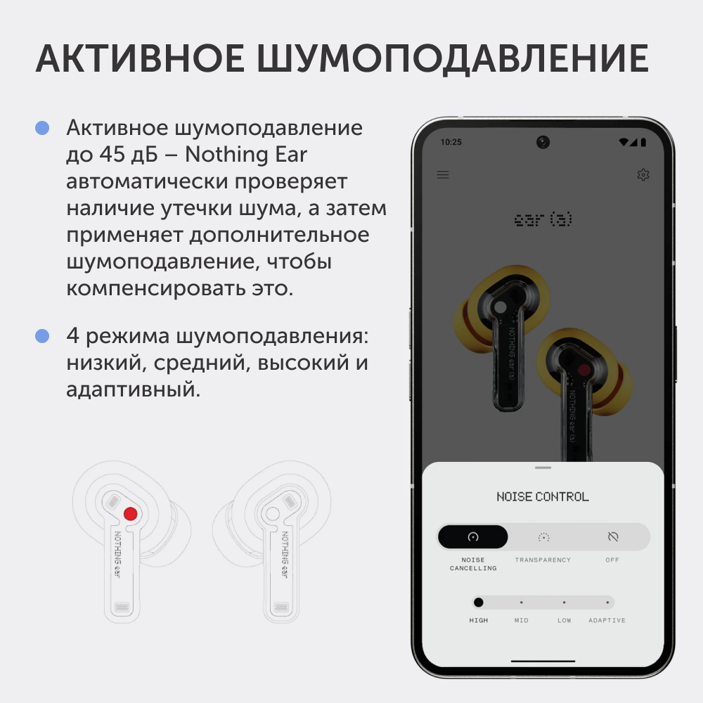 Беспроводные наушники Nothing Ear(a), время работы 42,5 ч, влагозащищенные, белые
