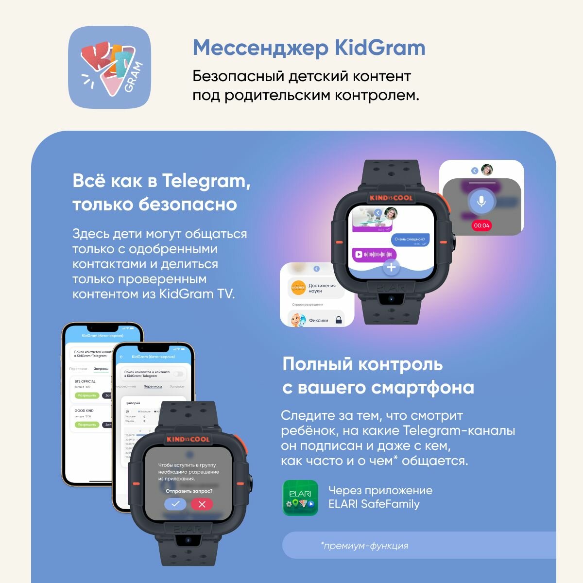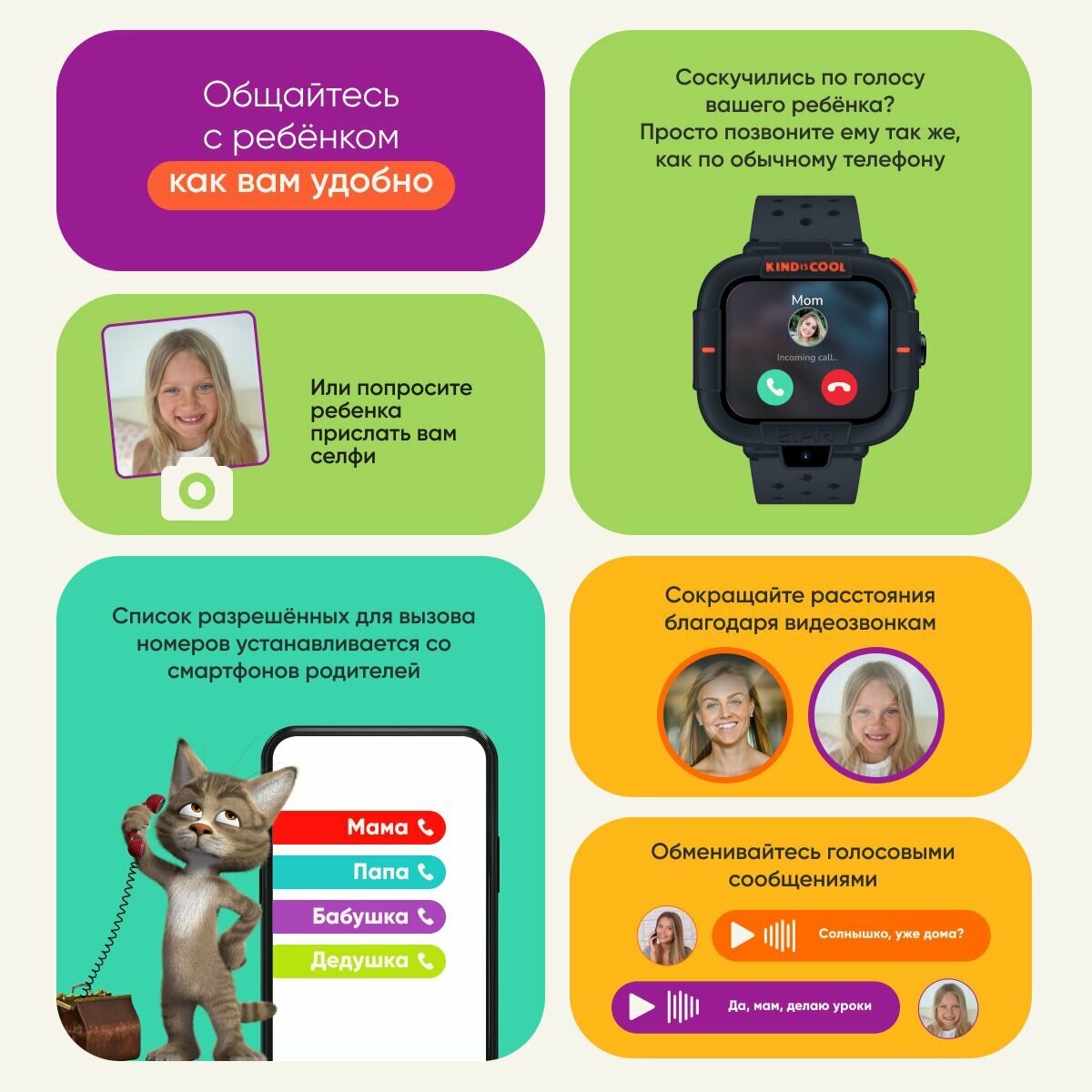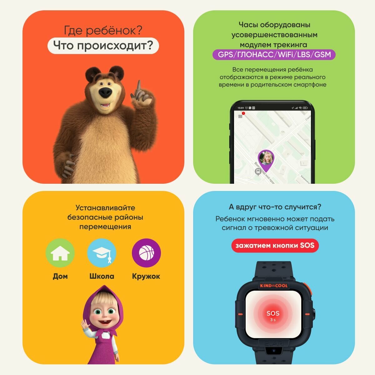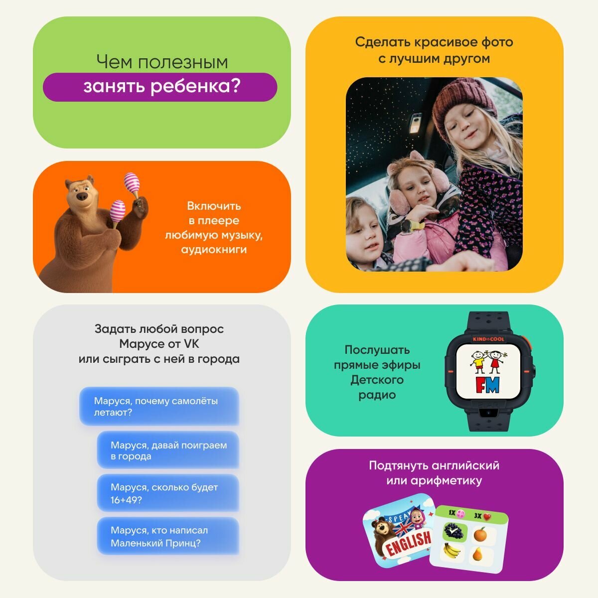 | Дополнительная информация | KidGram (детский шлюз в Telegram), режим «на занятиях», изменение рингтона и интерфейса экрана, виброрежим, игра «Английский с Машей и Медведем» |