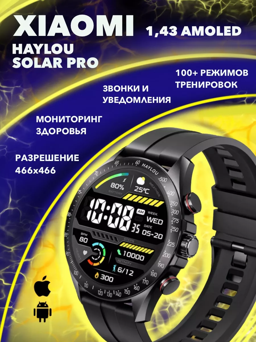 Смарт часы Xiaomi Haylou Smart Watch Solar Pro LS18 наручные черные интересное: