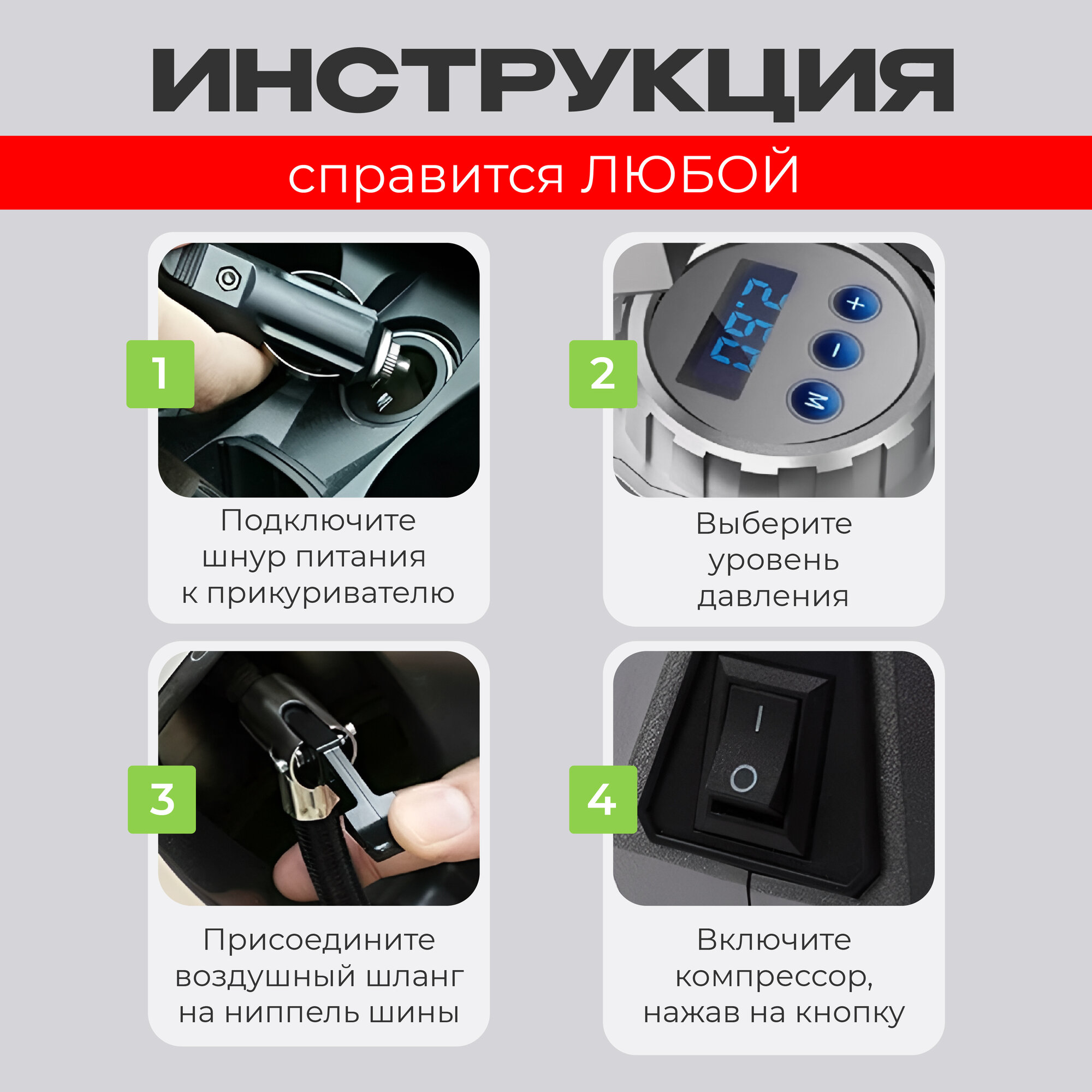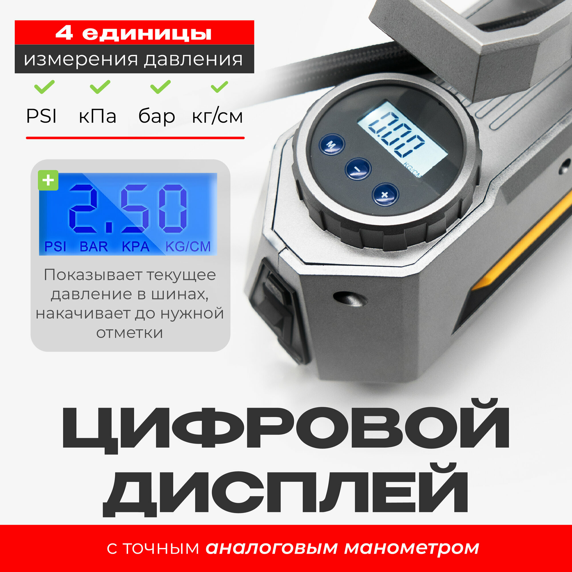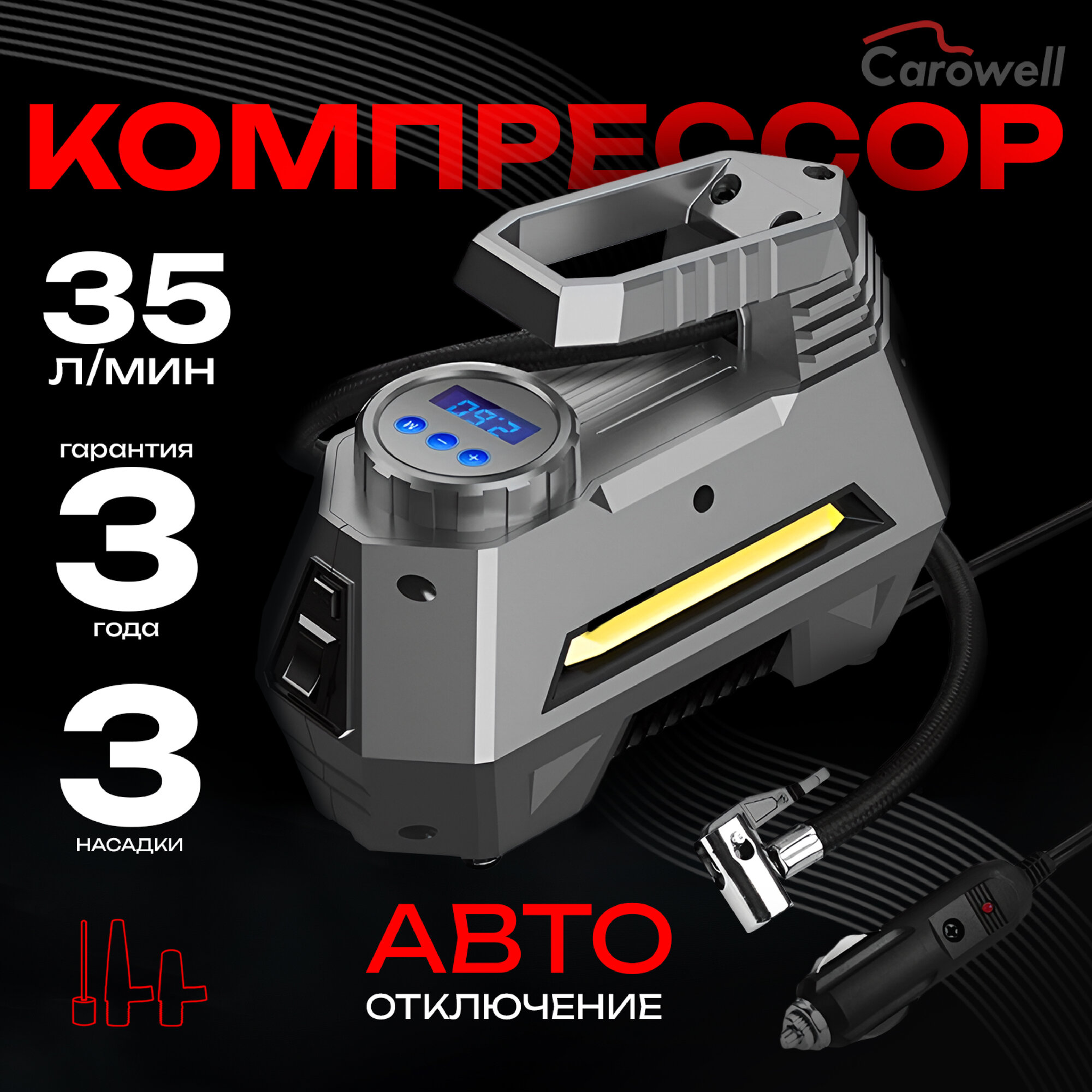 Автомобильный компрессор с дисплеем и автоматическим отключением Carowell. Насос автомобильный