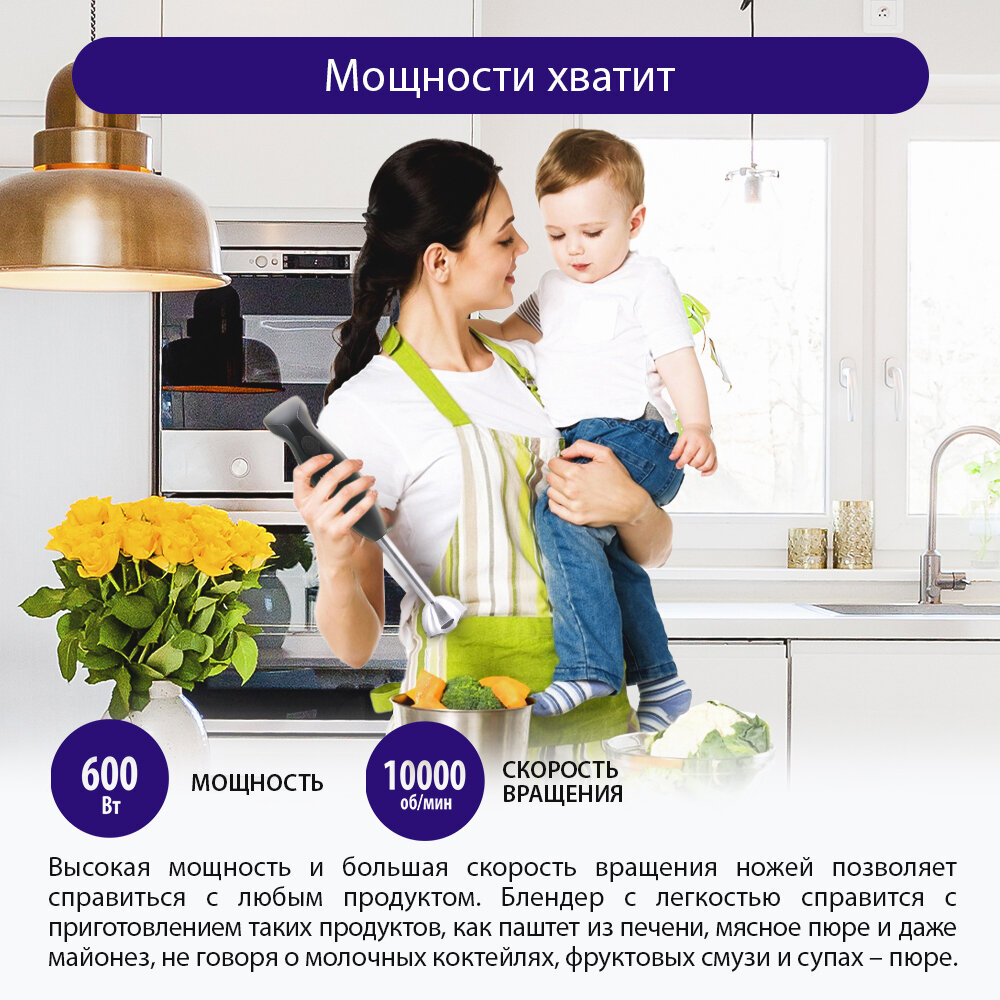 Погружной блендер 3 в 1, 2 скорости, мощность 800 Вт, небесно-голубой