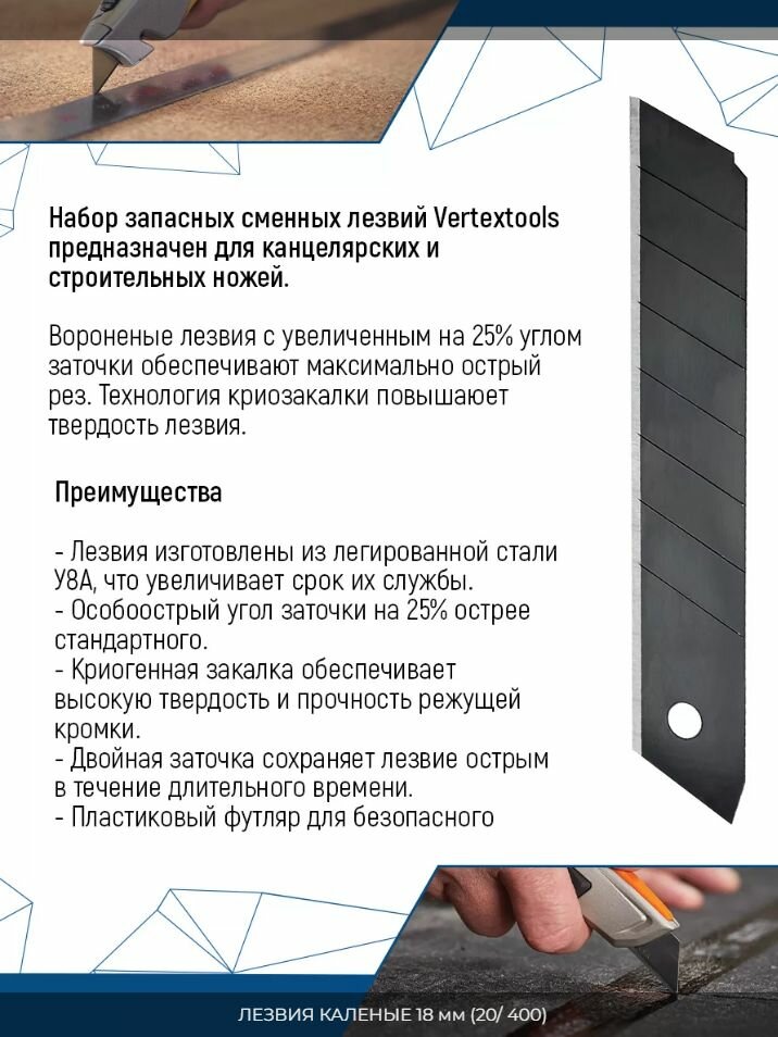 Лезвия для ножа VertexTools 0029-18, 18 мм, сегментное интересное: