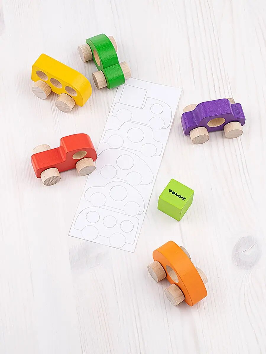 Деревянная фигурка-каталка Томик "Машинки", игровой набор из 5 разноцветных машинок, развивающая игрушка для малышей