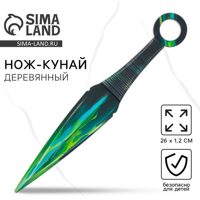 Деревянное оружие, детское сувенирное «Зеленый керисталл», нож кунай, 26 х 4 см