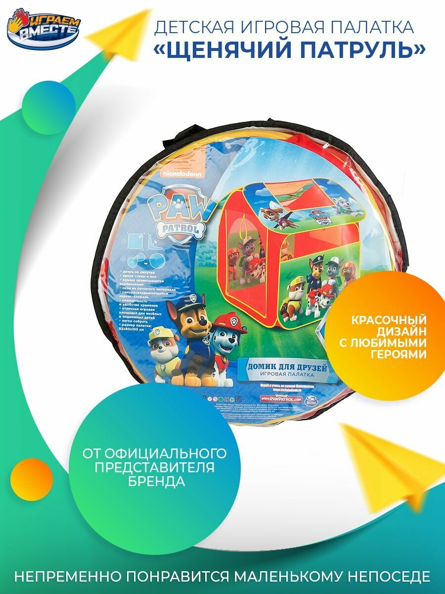 Купить Палатка детская игровая Щенячий патруль с сумкой для хранения Играем вместе / домик для детей