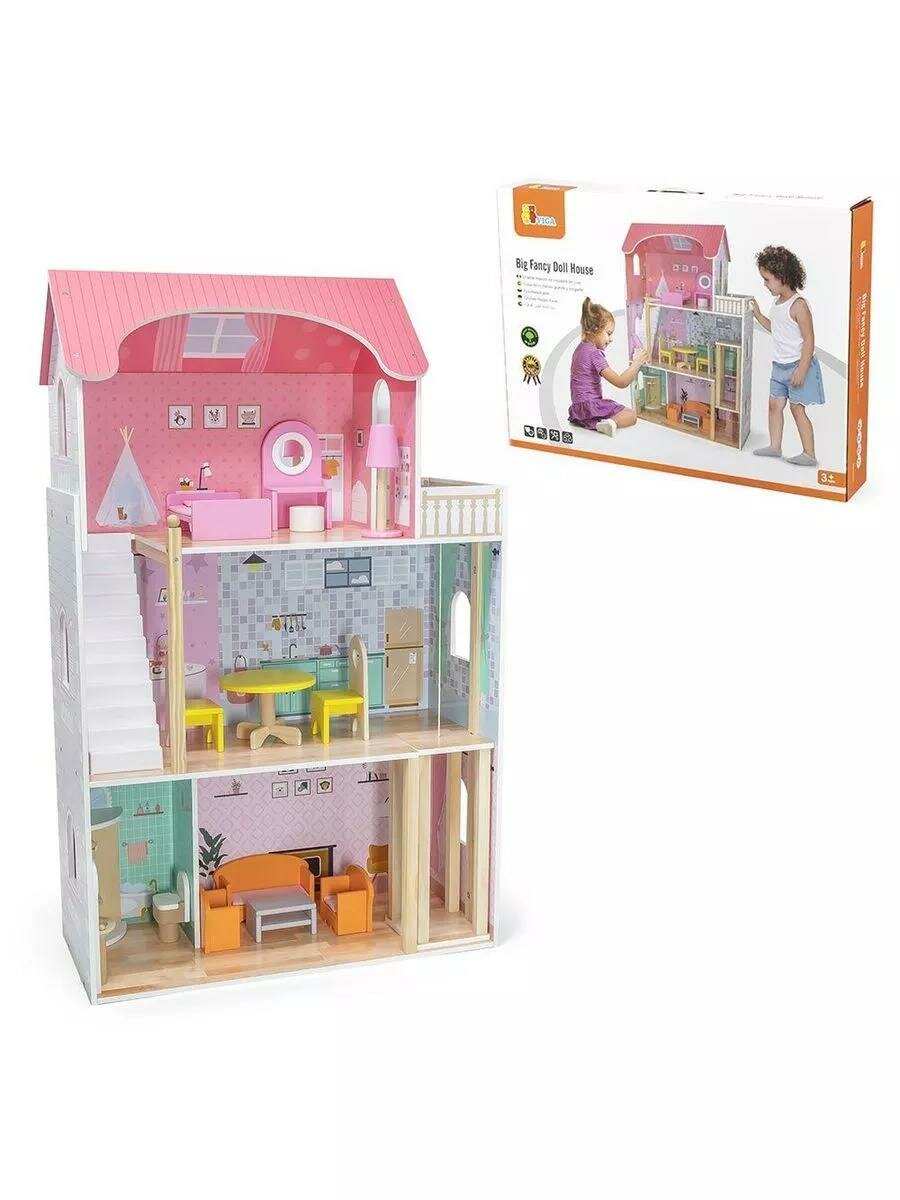 Кукольный дом Viga, 3 этажа, 5 комнат, с мебелью, в коробке 44570