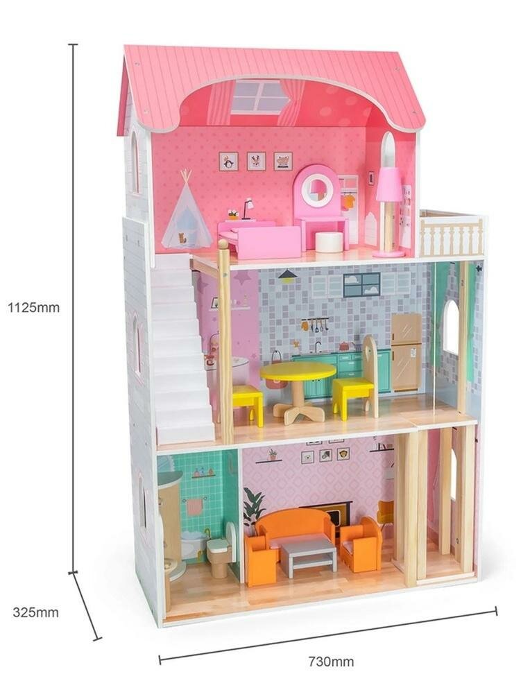 Купить VIGA Кукольный дом 3 этажа 5 комнат с мебелью (дерево) 44570 с 3 лет