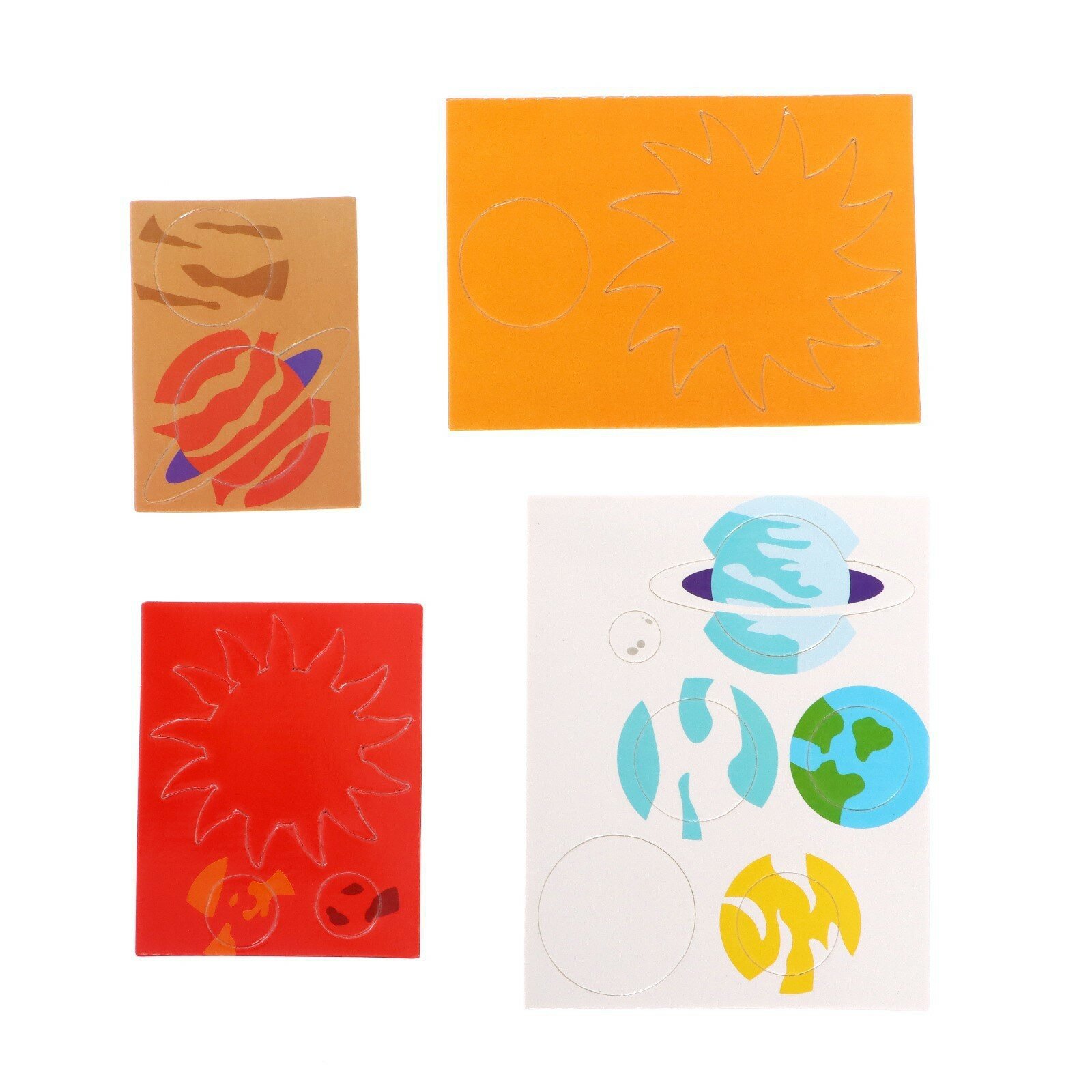 | Комплектация | основа (картон, пенополистирол): 16 × 16 × 0,5 см.,12 планет на липком слое (картон, пенополистирол), обучающий материал(инструкция), наклейки с названиями |