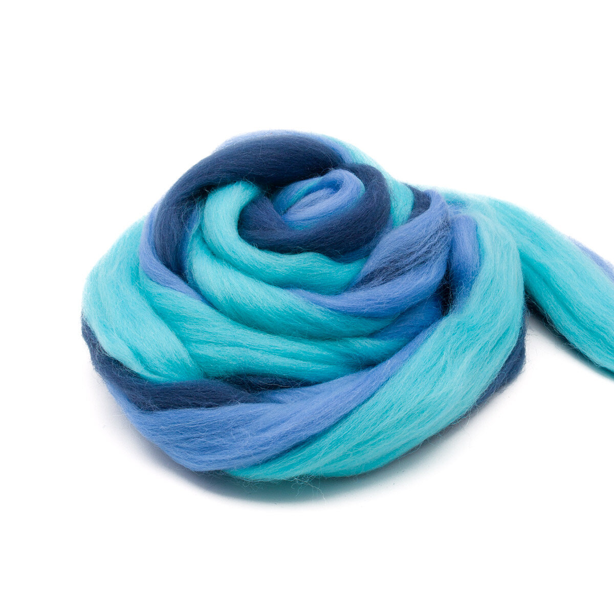 Шерсть для валяния полутонкая 100%, мультиколор, 100 г (1518 мультиколор - колокольчик, бирюза, джинсовый)