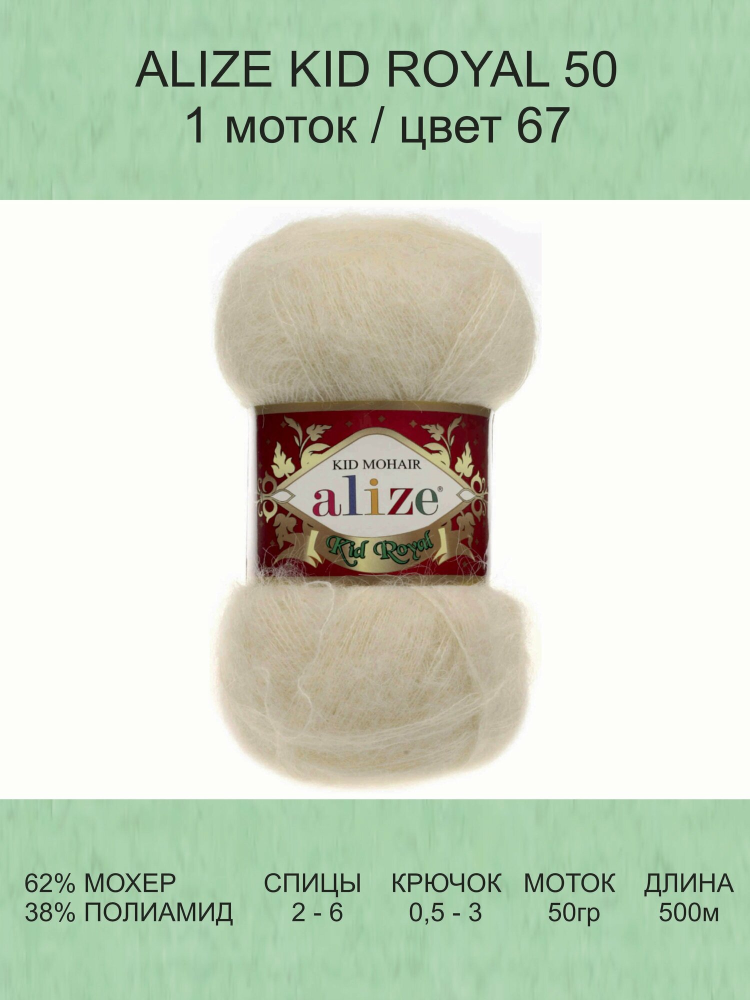 Пряжа Alize Kid Royal 50 молочно-бежевый (67), 62%кид мохер/38%полиамид, 500м, 50г, 1шт