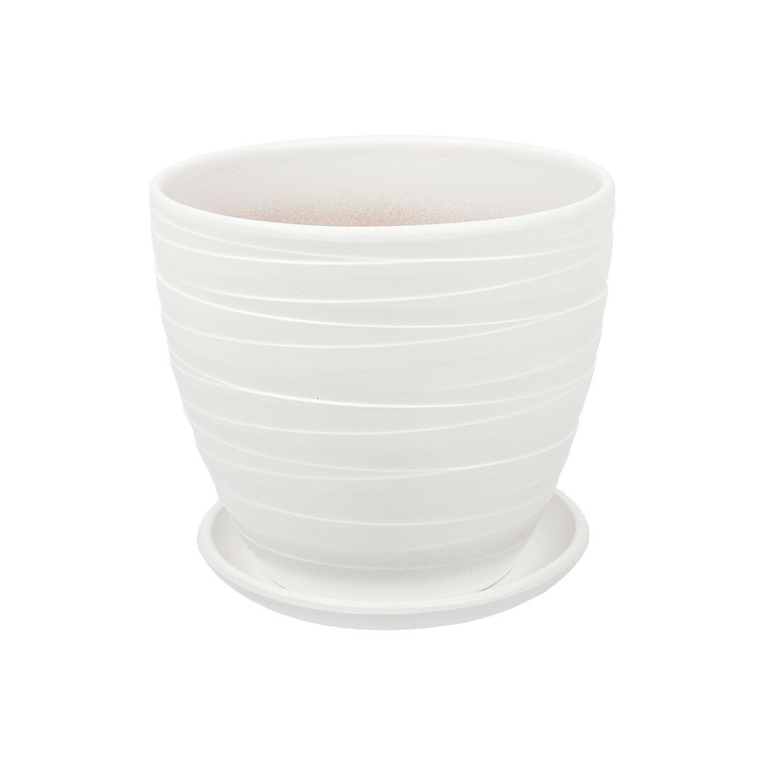 Керамический горшок цветочный ВеЩицы "Рельеф"с подставкой блюдцем / объем 1,4 л, цвет белый