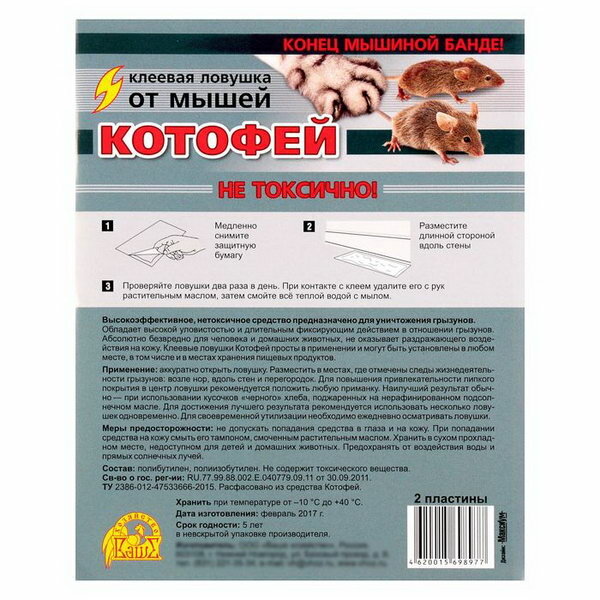 Котофей клеевая ловушка от мышей ( 2 ловушки-пластины)