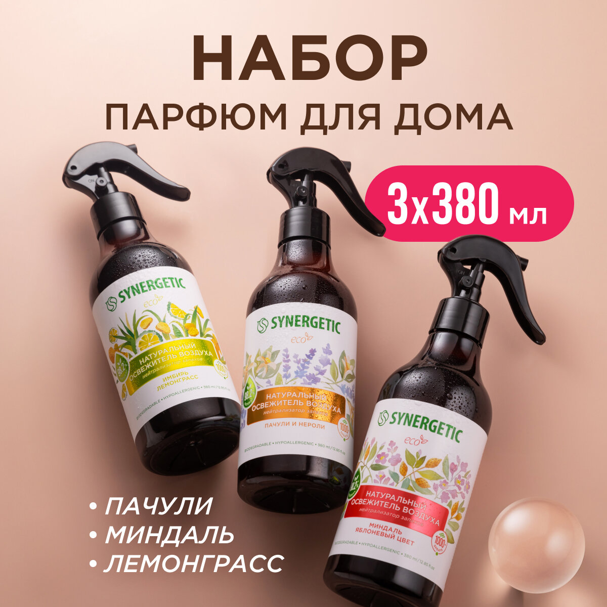 Набор освежителей воздуха SYNERGETIC с ароматами пачули, миндаля, имбиря и лемонграсса интересное: