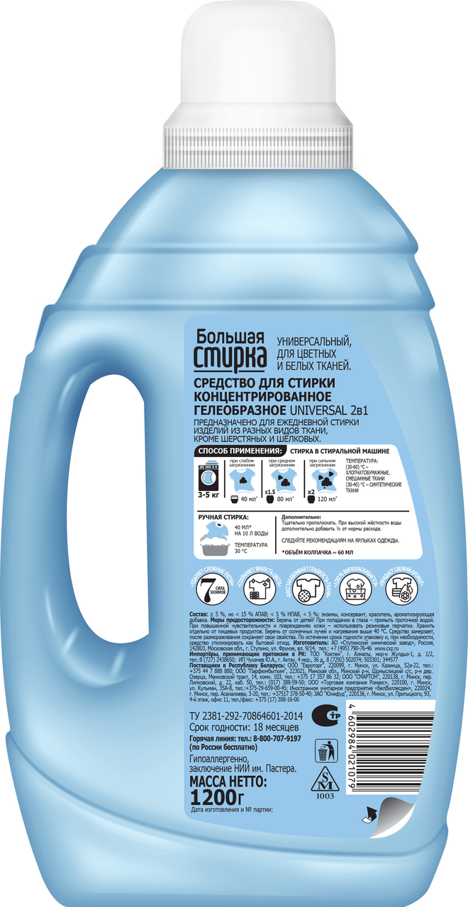 Большая Стирка Гель-концентрат для стирки универсальный, 1,2 л