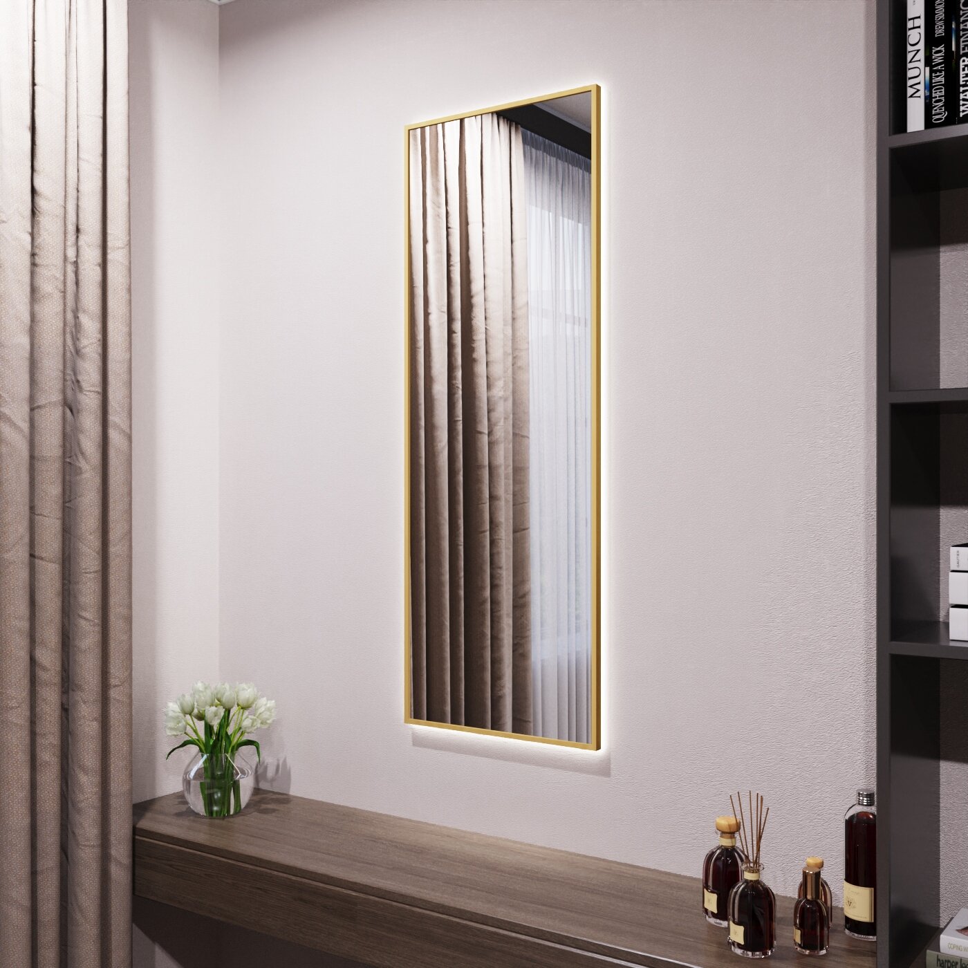 Зеркало с подсветкой в алюминиевой раме настенное Market-house 180х60 см. Свет: Нейтральный Белый 6000К. Золото