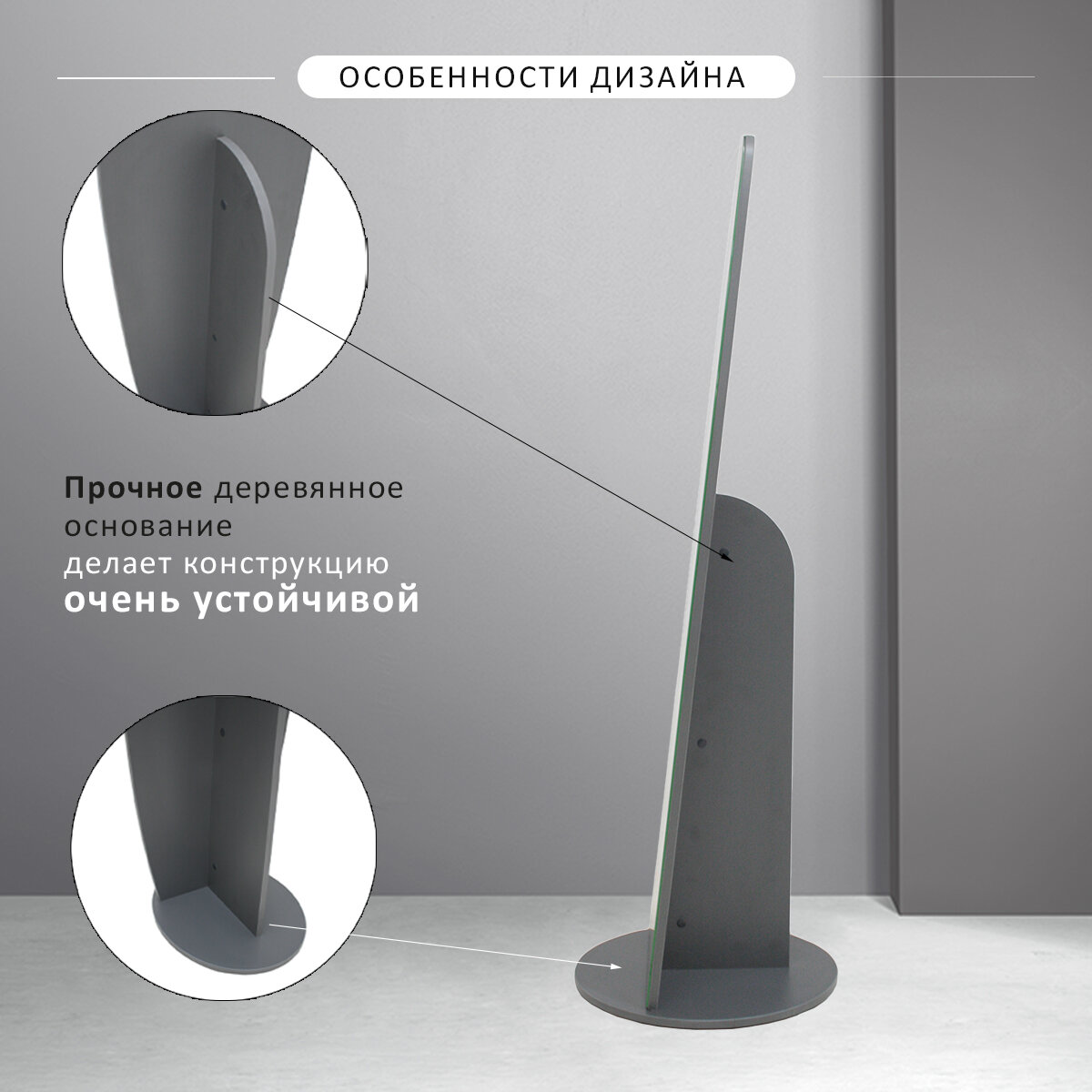 Зеркало напольное Мебелик BeautyStyle 1 серый графит Размеры: Высота 1300мм Глубина 450мм Ширина 350мм