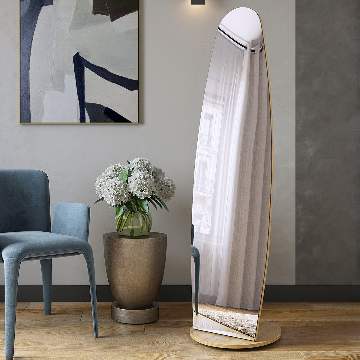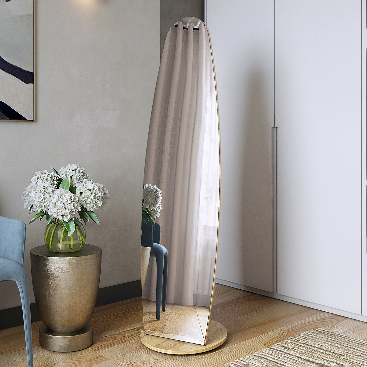 Зеркало напольное интерьерное в полный рост криволинейное с напольной подставкой "Stone" 170смх70см