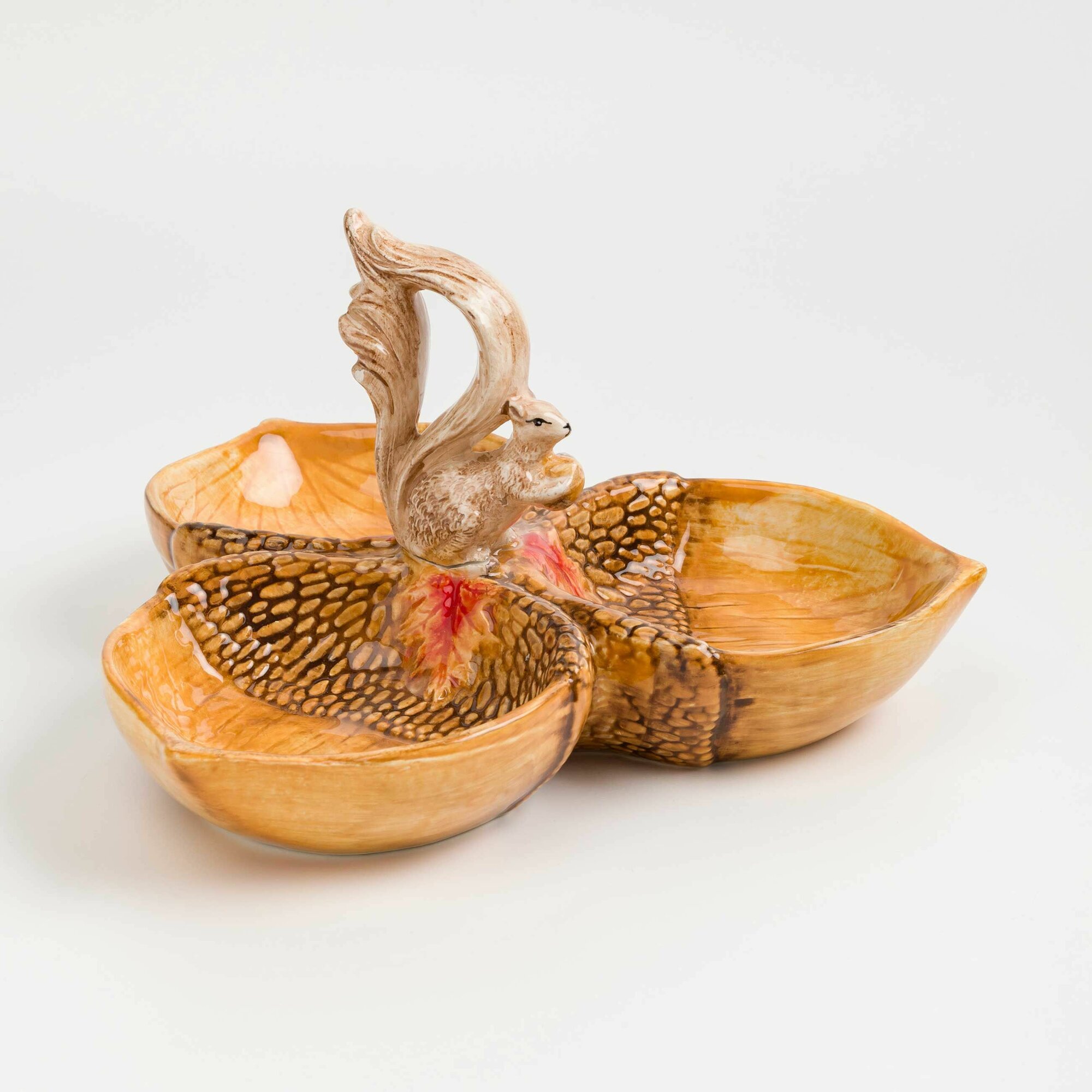 Подставка для закусок, 20 см, 3 отд, керамика, коричневая, Белка и желуди, Forest symphony интересное: