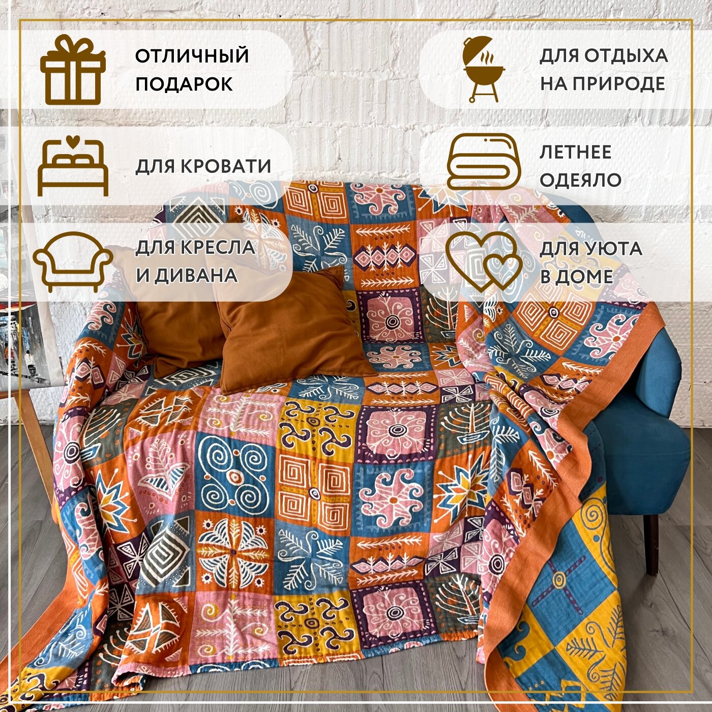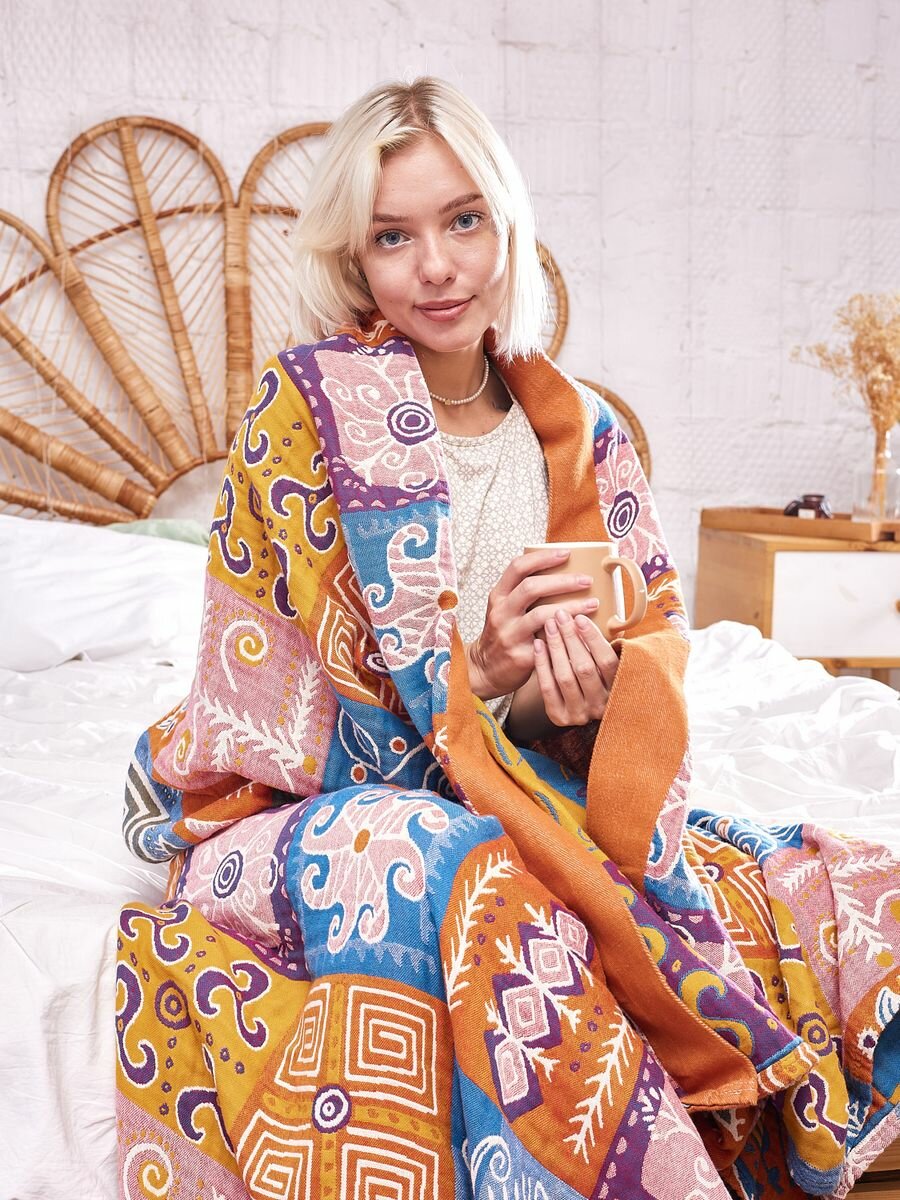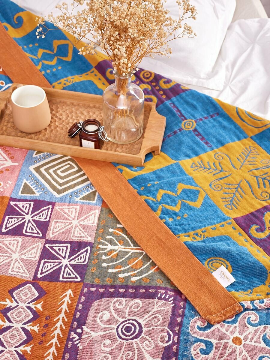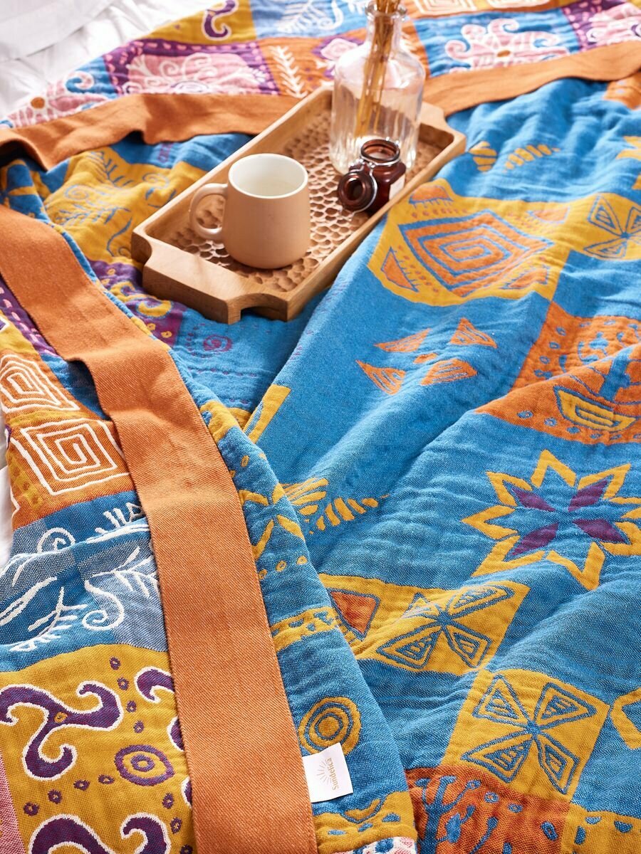 Покрывало на кровать Sundelica Плед 150х200 "Солнечный орнамент" Хлопок Муслиновое одеяло