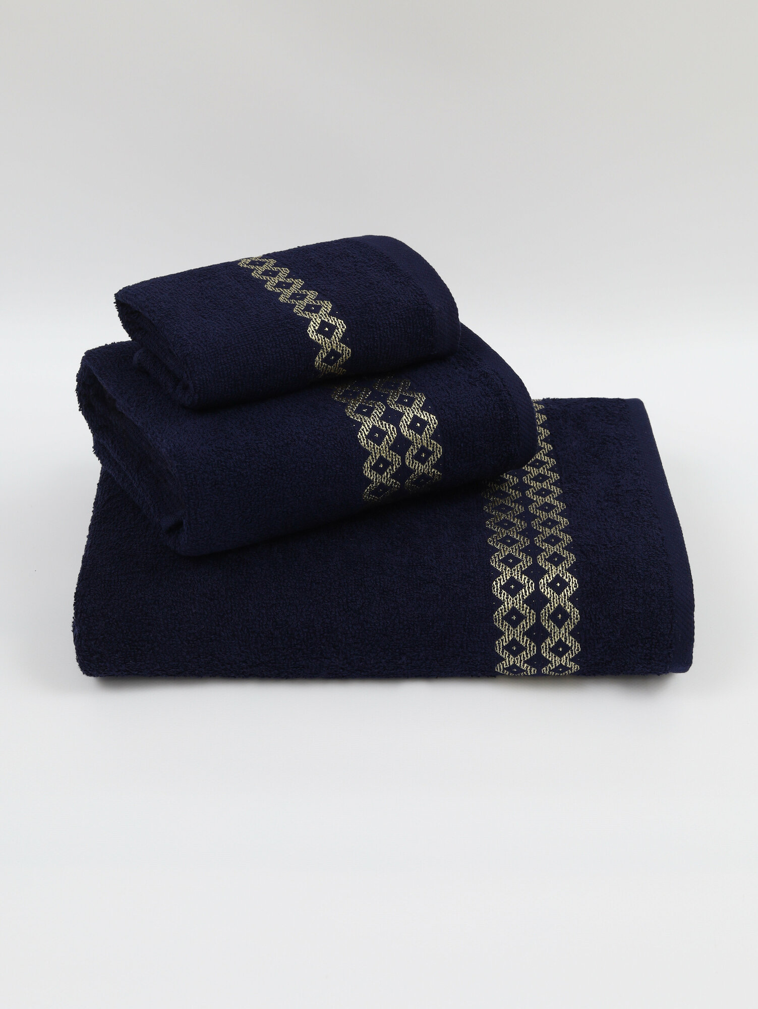 Набор махровых полотенец № 2707 Блеск темно-синий 3 шт (30х60 1 шт, 50х80 1 шт,70х130 1 шт)