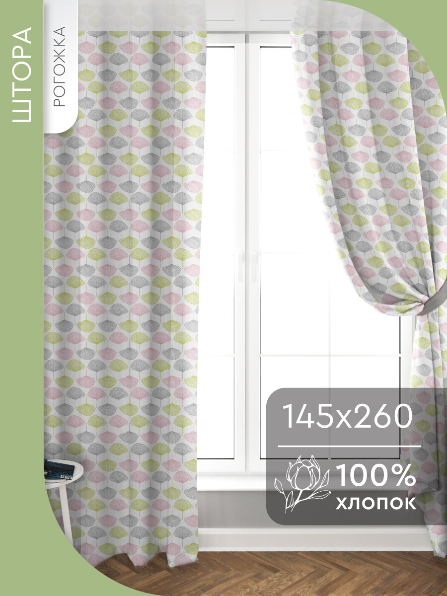 Штора кухонная Василиса 145х260 см, Рогожка, 100% хлопок, Тесьма, Цветение