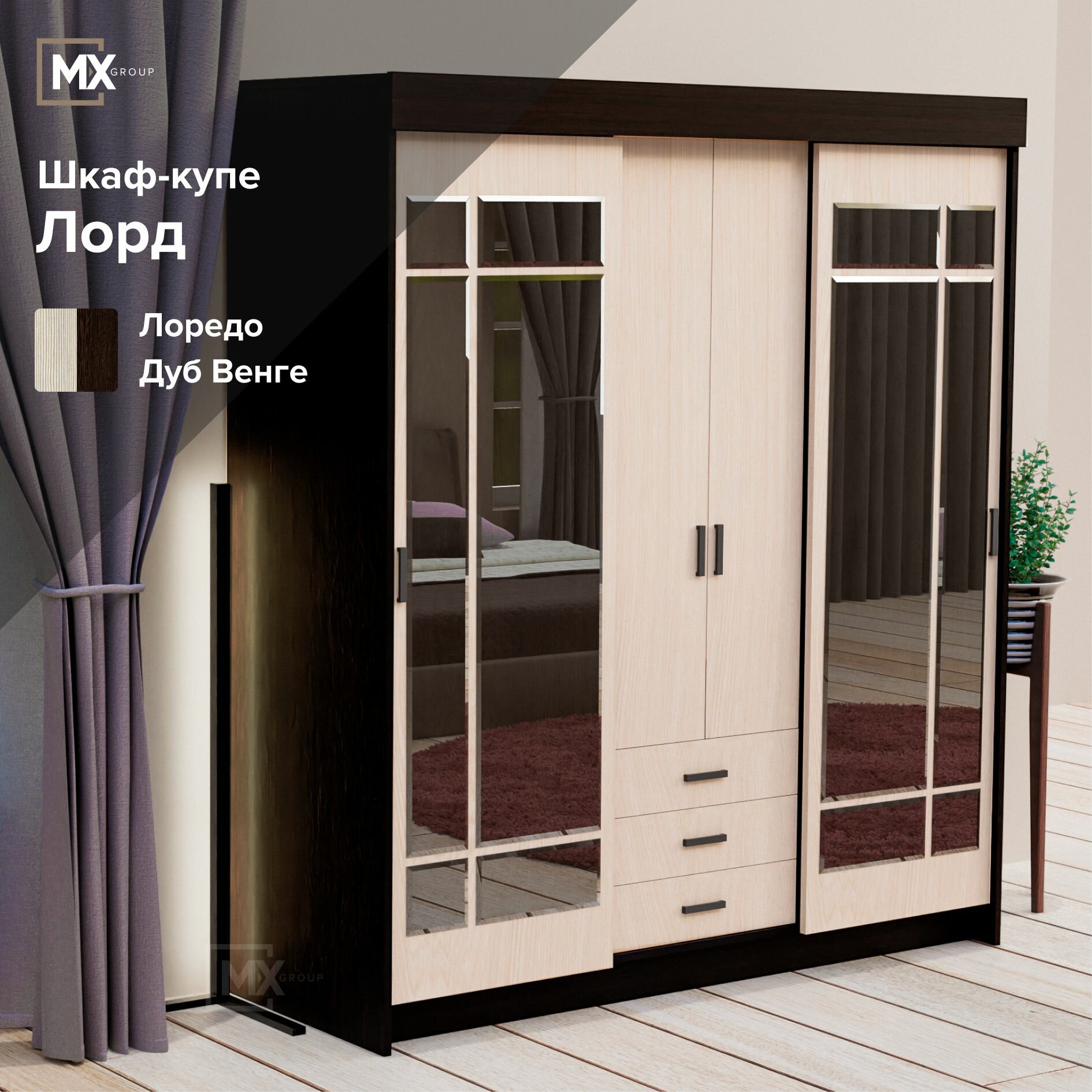 Шкаф-купе Лорд/Фортуна Дуб Венге/Лоредо, ЛДСП, с полками, ящиками, штангами 1700х2200х580 ЭРА интересное:
