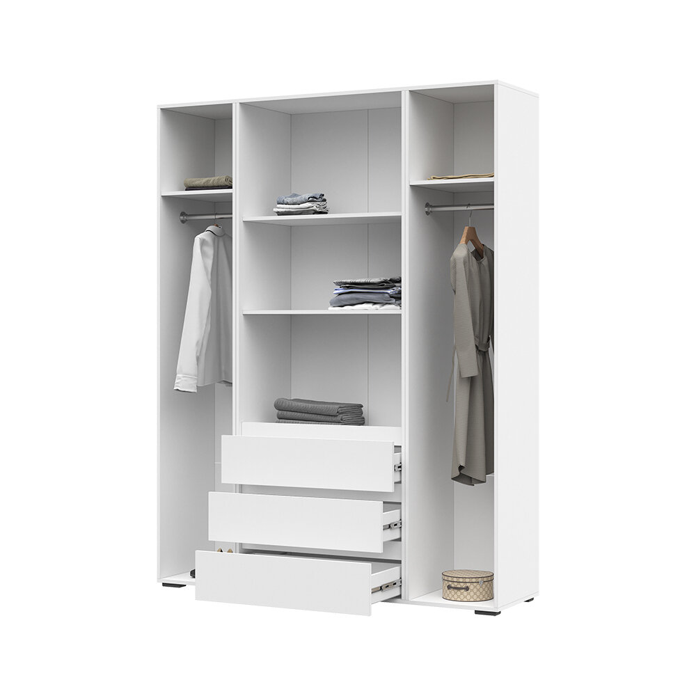 Распашной шкаф для одежды с ящиками, со штангой, с полками, 160х46х210 см, Белый, Хелен ШК 05