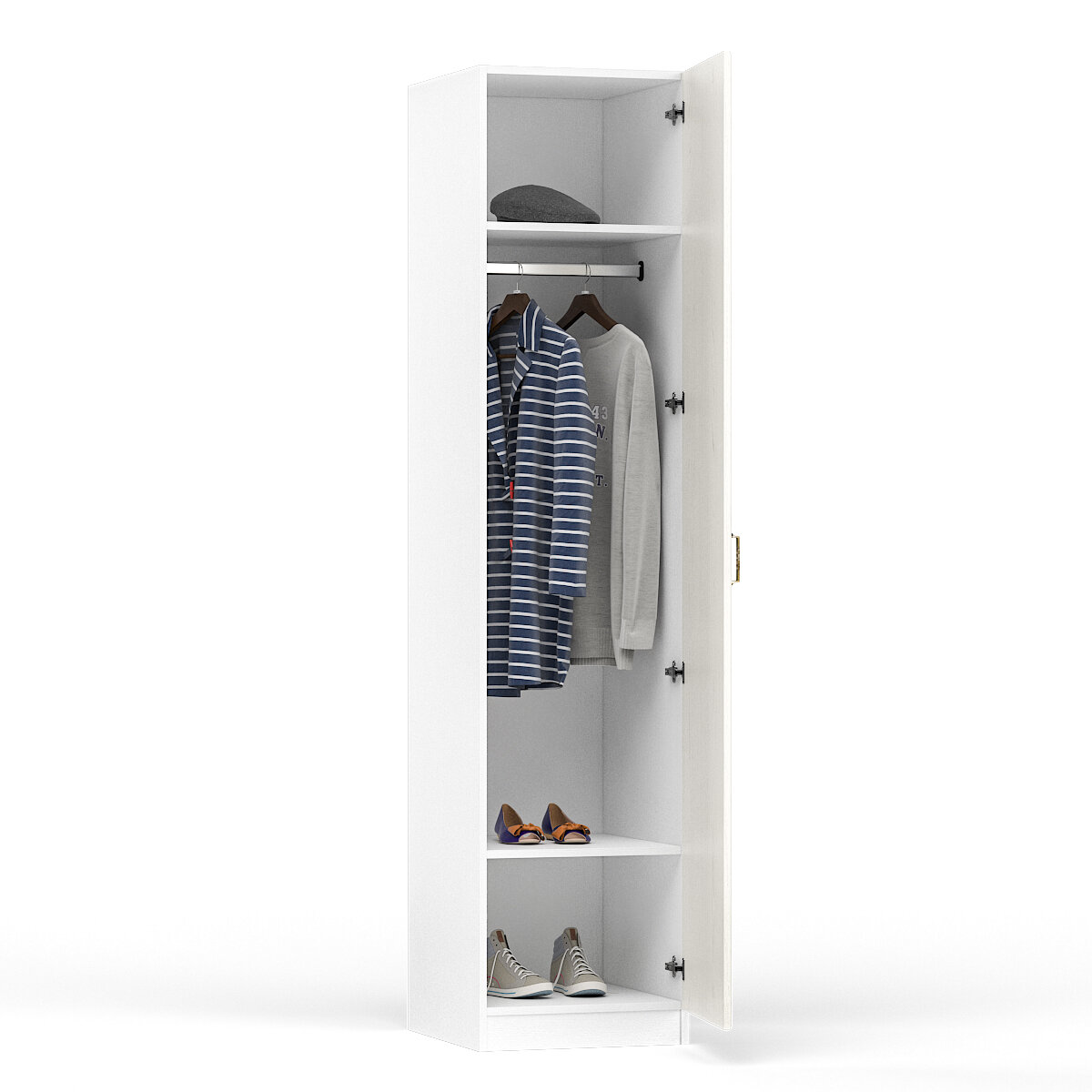 Шкаф для одежды распашной Нонтон Луас, 120 см, 7 полок и штанга, белый глянец