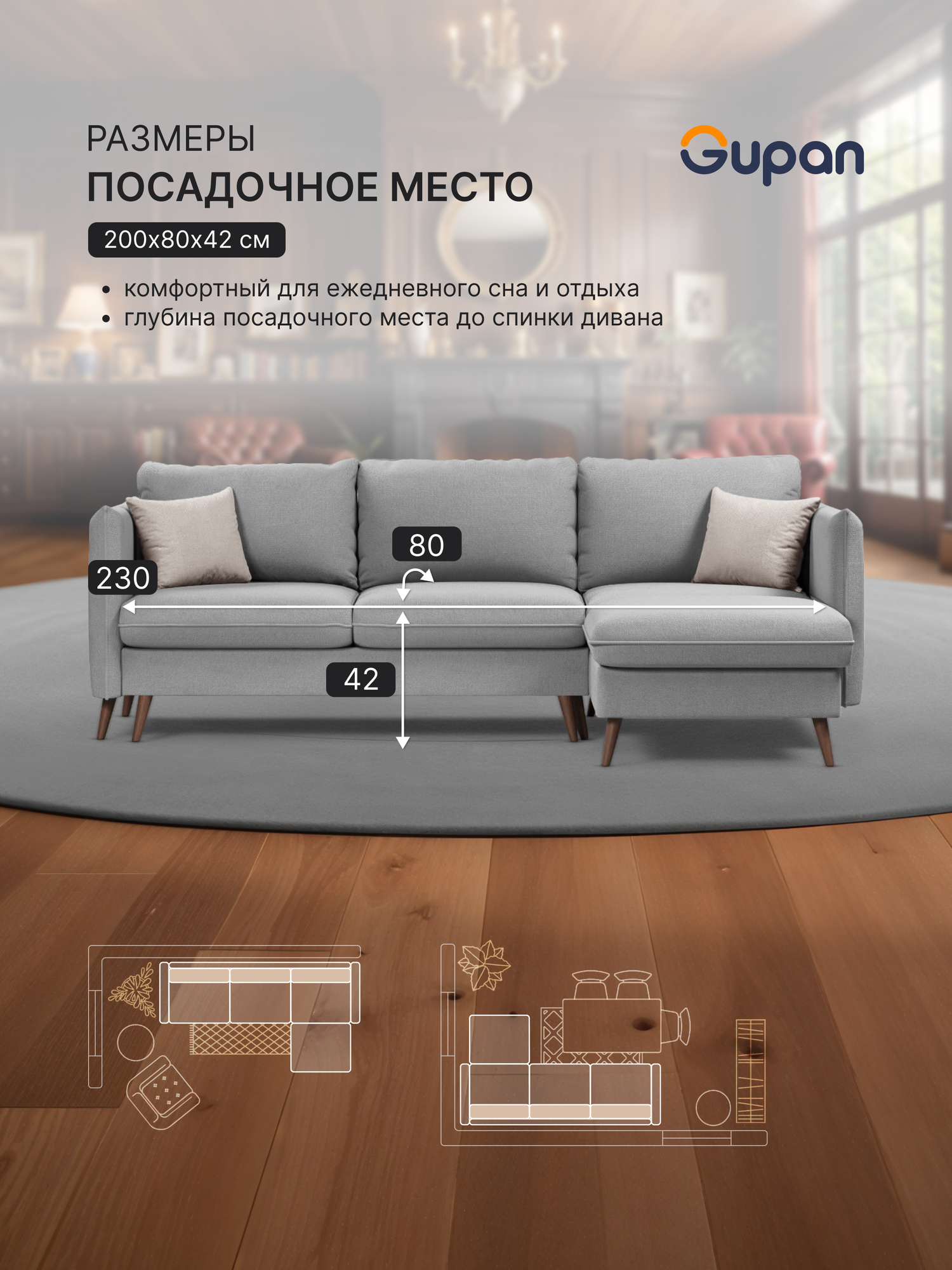 СохранитьДиван угловой Gupan Делорм Велюр Amigo Ash, раскладной, механизм еврокнижка, беспружинный, с ящиком для белья интересное: